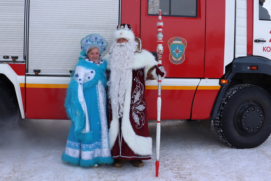 На пожарном автомобиле Дедушка Мороз и его внучка и главная помощница в деле пожарной профилактики Снегурочка посетили социальных объектов с пребыванием детей. Первой точкой на карте стал Владимирский детский дом им. К. Либкнехта. Его воспитанники выбежали встречать необычных гостей на улицу, несмотря на мороз. Дедушка поздравил малышей с наступающим Новым годом и раздал подарки. А ребята вручили Деду Морозу подарки, сделанные своими руками.