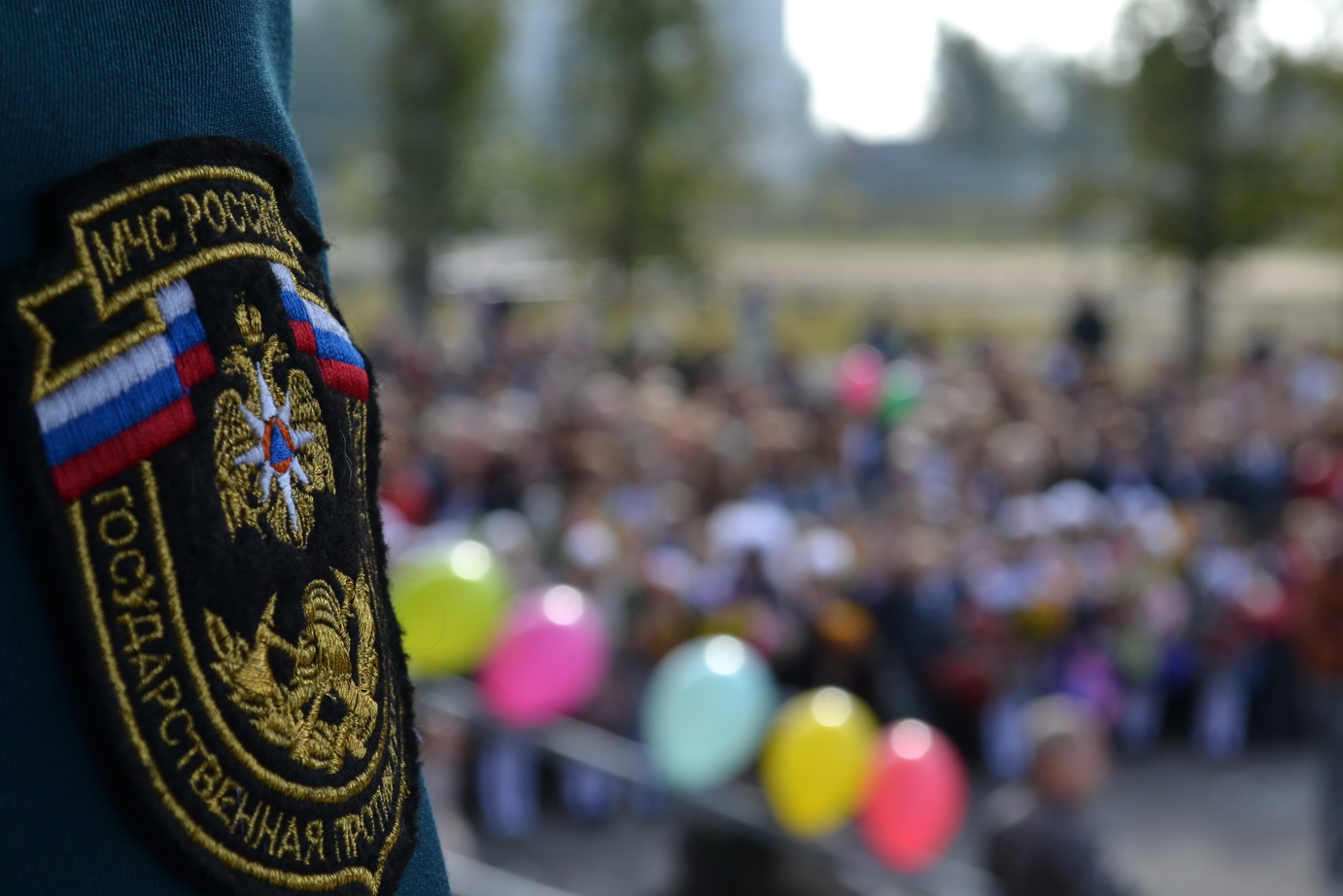 Торжественная линейка завершилась, разноцветные шары взмыли в небо, ученики поспешили в классы на Урок Мира. А работа у сотрудников МЧС продолжается.