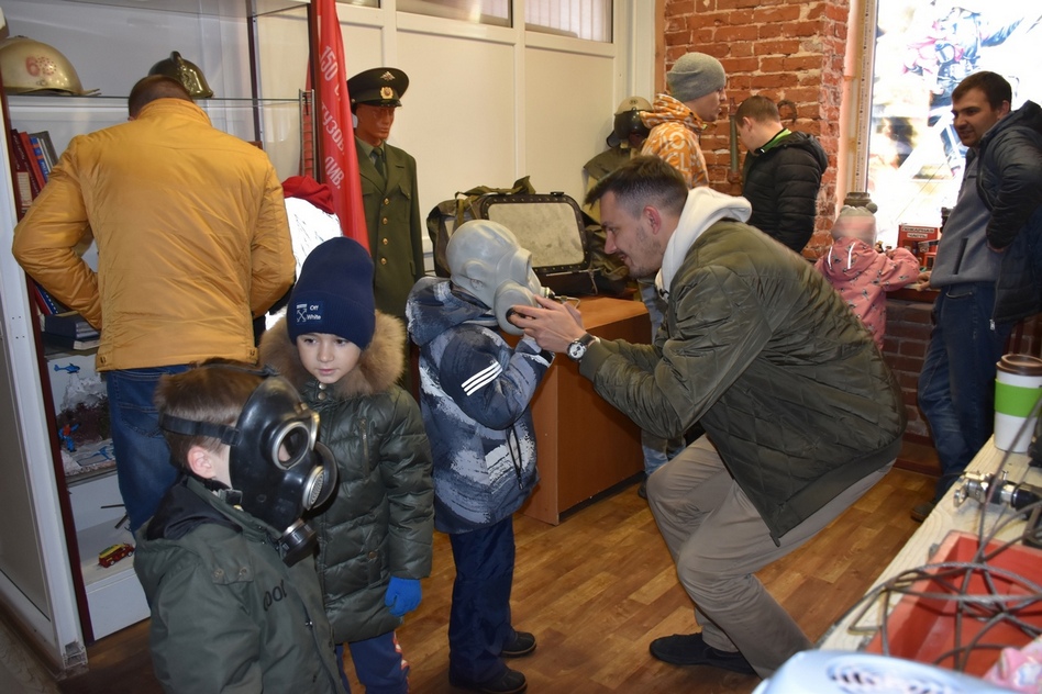 После того, как пожарные продемонстрировали гостям тушение условного пожара легковоспламеняющийся жидкости при помощи генератора пены средней кратности, экскурсия продолжилась в музее 14 пожарной части.