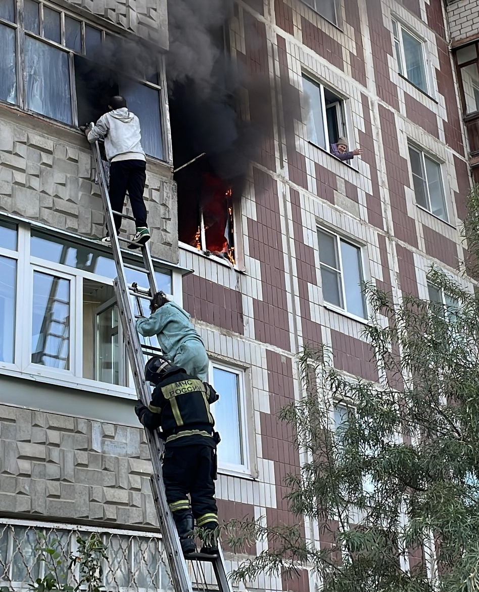 Напомню, что 14 сентября в 15:50 в пожарную охрану города Коврова поступило сообщение о пожаре в многоквартирном жилом доме по адресу: Ковров, Строителей, 22/1. Когда пожарные прибыли к месту вызова, из окна квартиры на третьем этаже шел густой дым, вырывались языки пламени, на балконе горящей квартиры два человека просили о помощи. Пожарные приступили к их спасению.