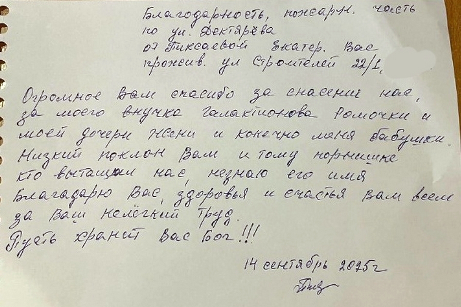 Ее благодарственное письмо, написанное от руки, — это не просто формальность. Это искреннее, идущее от сердца «спасибо» за профессионализм, мужество и готовность в любой момент прийти на помощь.