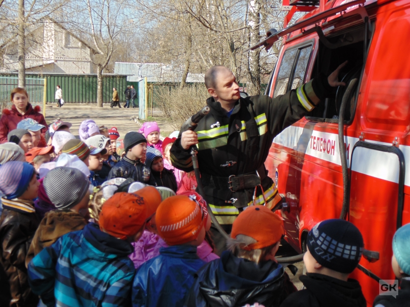 Мальчики первым делом примерили пожарные каски и пошли изучать внутреннее устройство автомобиля, а девочки красовались перед объективом фотоаппаратов на фоне красной машины. Сотрудники группы профилактики пожаров заострили внимание на безопасности – напомнили ребятам о запрете на игры со спичками, зажигалками и любыми другими опасными предметами. На прощание дети хором поздравили гостей с Днем пожарной охраны и пожелали им «Сухих рукавов»!