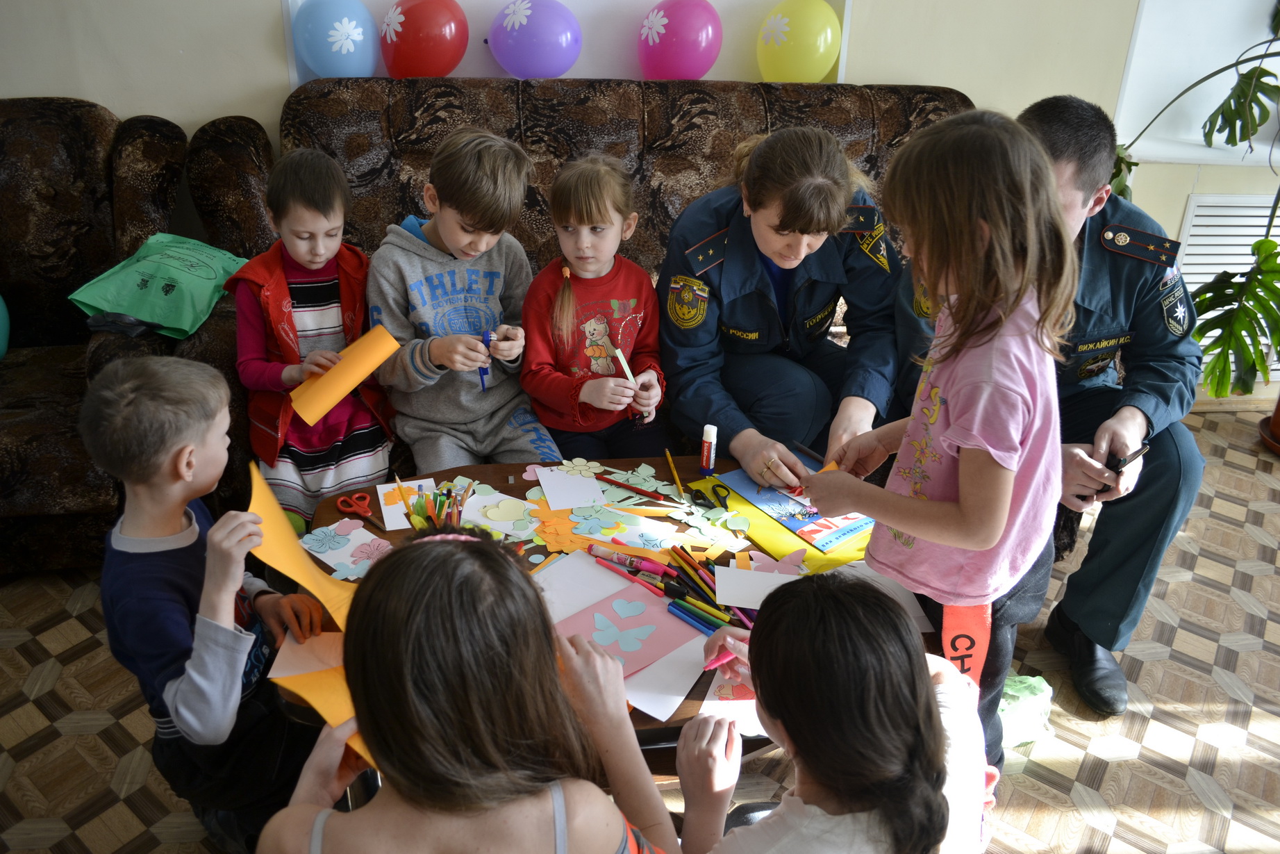 Малыши вместе с сотрудниками МЧС мастерили открытки к 8 марта для мам и бабушек. Разноцветные бабочки, ромашки, домики и цветы заполонили все пространство гостиничного холла. Давно ребята не улыбались и не смеялись так, как сегодня. Взрослые, проходя мимо, останавливались со словами: «Как у вас тут светло и радостно. Такая громадная энергетика добра и взаимопомощи. Спасибо вам огромное за наших детей и за наше будущее».