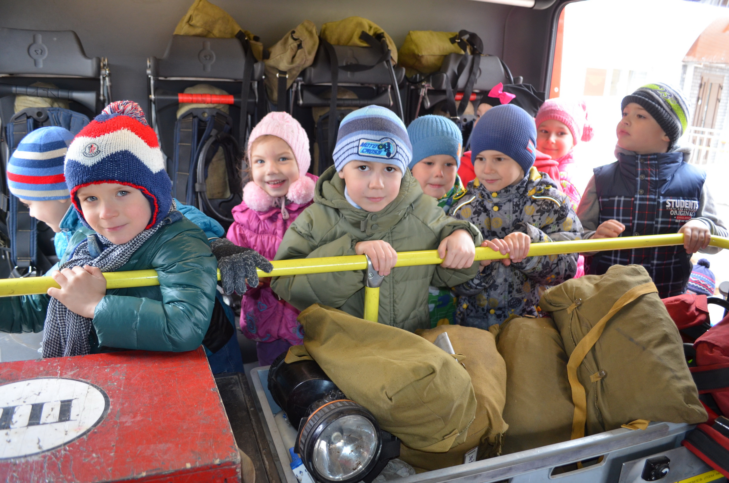 Выслушав полезную информацию о безопасном обращении с огнем, ребята облепили пожарный автомобиль. Мальчики задавали огромное количество вопросов водителю и пожарным, их интересовало абсолютно всё: что за экран около водительского места, из какого материала делают пожарные рукава, зачем в пожарной машине спасательный круг. Девочкам было любопытно, что можно резать гидравлическими ножницами, кроме железа, есть ли боевая одежда для женщин с юбками.