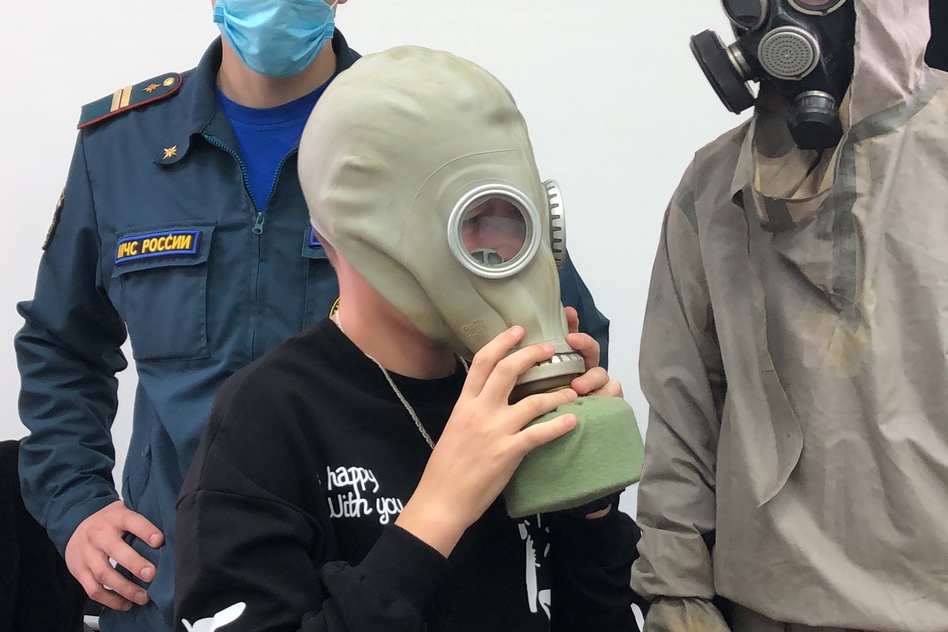 В практической части занятий ученики примерили и противогазы и защитный костюм Л1, без которого не обходится ликвидация ни одной чрезвычайной ситуации, связанной с выбросом АХОВ.