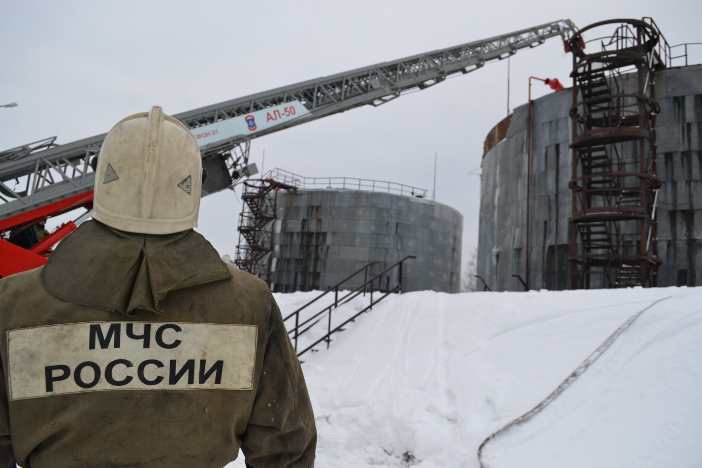 Административно-руководящий состав объекта тренировался в организации проведения вынужденной эвакуации людей из здания и локализации пожара имеющимися средствами пожаротушения до прибытия пожарных подразделений. Личный состав пожарно-спасательных подразделений и нештатных аварийно-спасательных формирований тренировался в работе с техническими средствами подачи воздушно-механической пены в резервуар с мазутом.