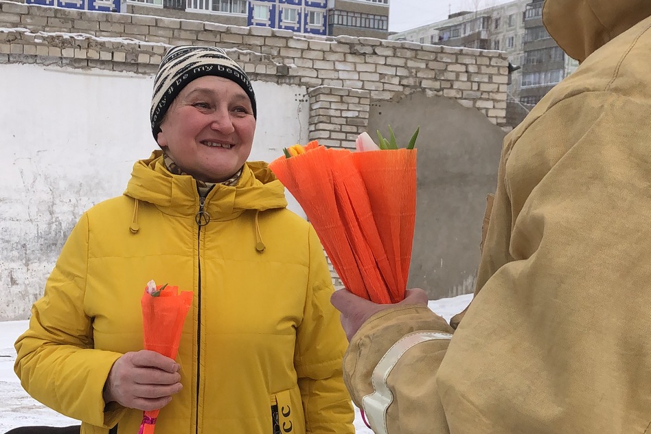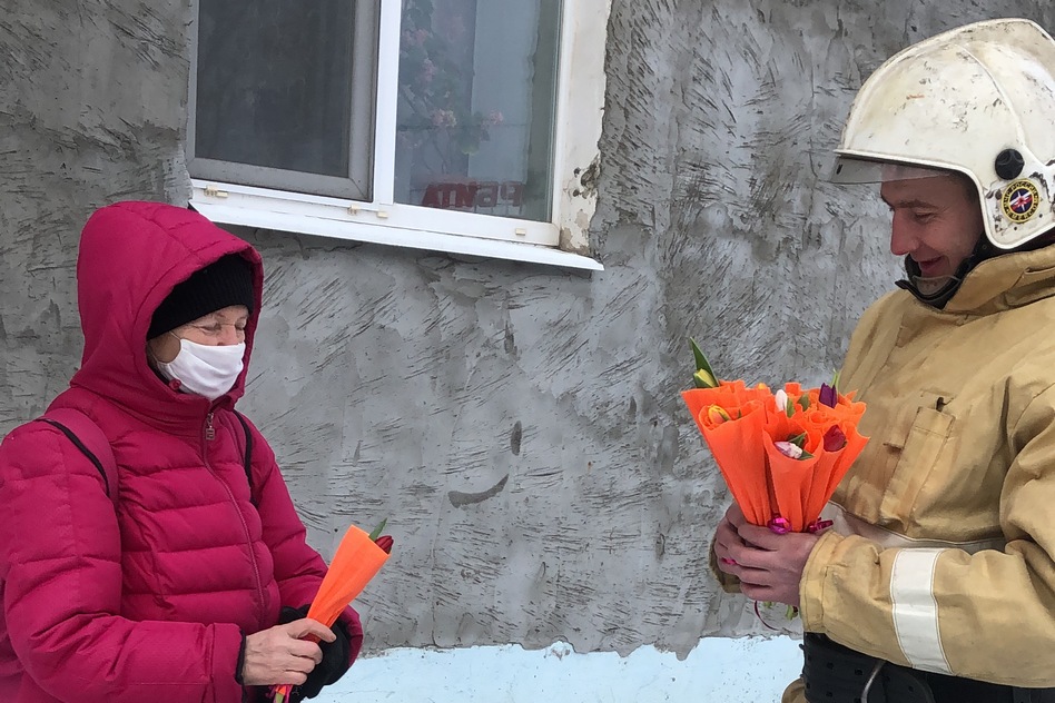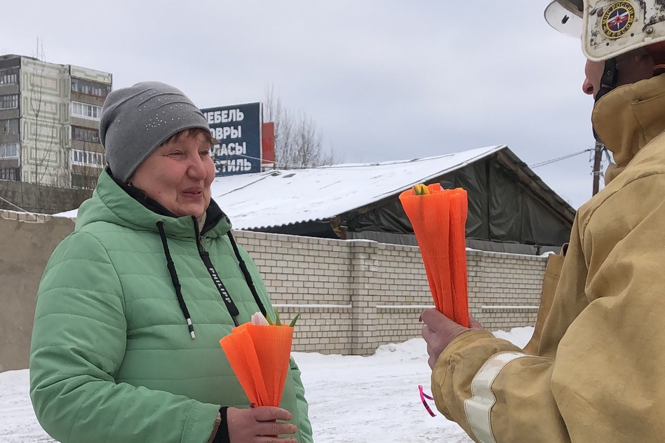 Утро выдалось не по весеннему морозным. Пожарные 4 ПСО, собрав яркие букеты, вышли в город, чтобы поздравить женщин и подарить им улыбки и символический лучик солнца. Из задумчивых, серьезных, спешащих по своим делам, женщины сразу превращались в милых и домашних, на минутку беззаботных.