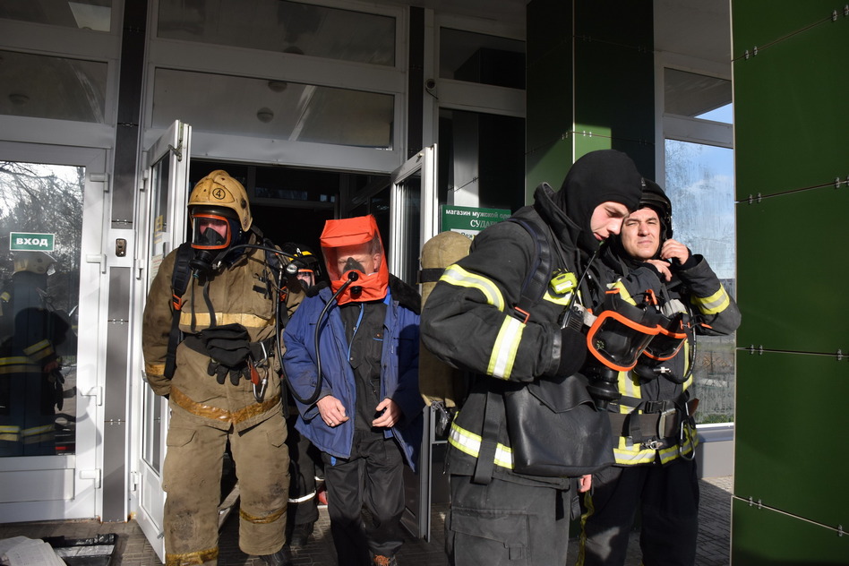Звенья газодымозащитной службы незамедлительно были направлены на поиски пострадавших и на тушение огня. Согласно дополнительной вводной, поступившей от руководителя учений начальника дежурной смены службы пожаротушения Михаила Семенова, огонь через вентиляционные шахты вышел на кровлю здания. Для борьбы с ним был развернут автоколенчатый подъемник.