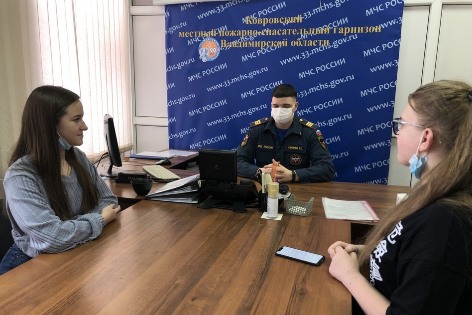 Ученицы 8 класса Малыгинской школы Ковровского района Владлена Базунова и Ксения Шубина принимают участие в конкурсе сочинений «Интервью с героем нашего времени». Девочки договорились о беседе с пожарным в 14 пожарно-спасательной части. Сотрудник МЧС был выбран ими для интервью не случайно – осенью 2022 года в России отметят 90-летие со дня образования системы гражданской обороны страны.