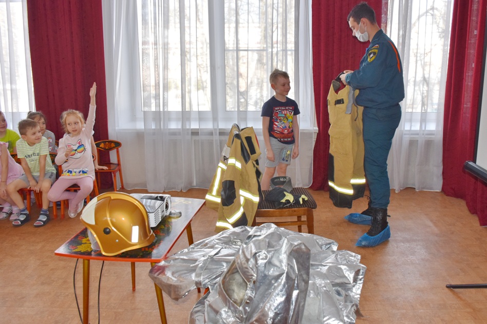 Все пожарные тушат огонь в специальной боевой одежде. Точно такую сегодня сотрудники МЧС принесли с собой в садик.