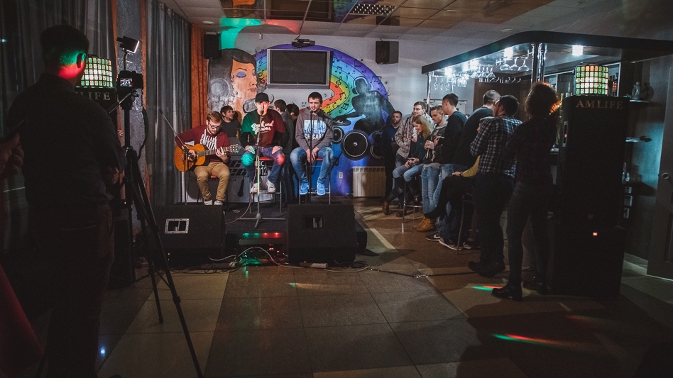 Получается, в тот вечер организаторы на полный зал в принципе не рассчитывали?! В пользу этой версии говорит ещё и своеобразный дресс-код. На входе в кафе гостей (многие решили сходить на открытие исключительно из-за заявленных в афише исполнителей) останавливало тамошнее секьюрити. Мол, всё занято, разворачивайтесь.
