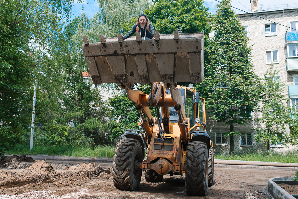 Напоследок ваша покорная слуга не удержалась, решила сделать «фоточку для инсты». Как бы поживописнее встать? Может, в ковше погрузчика?
