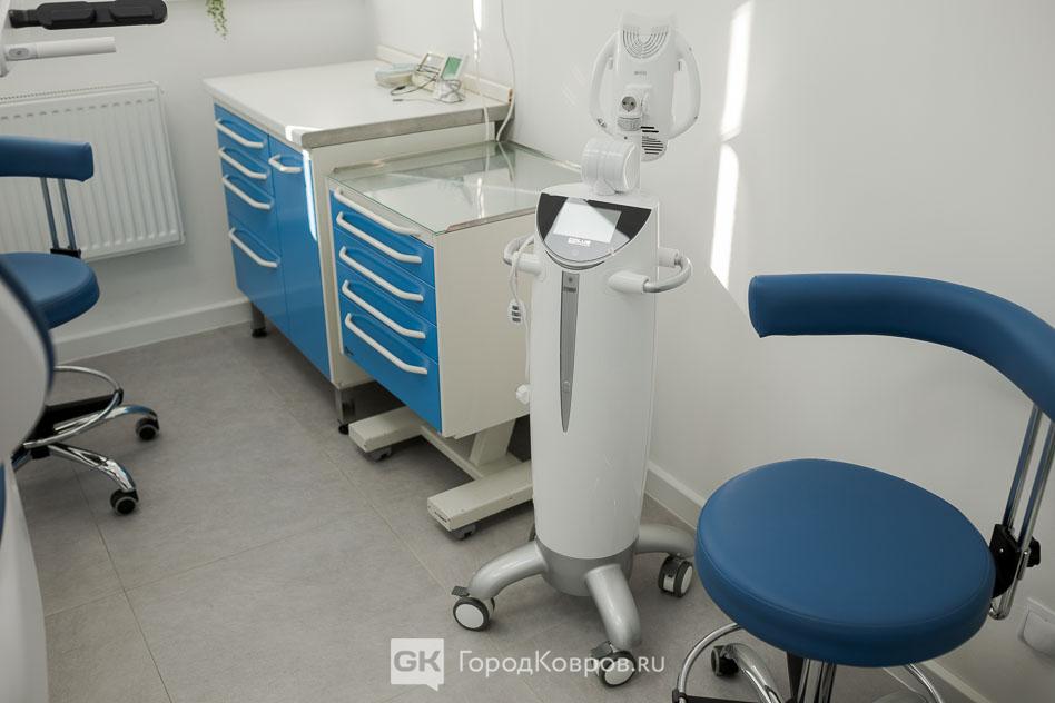 Наша экскурсия продолжилась в кабинетах для взрослой стоматологии. Обратил на себя внимание аппарат для отбеливания зубов. Ольга Финохина, руководитель стоматологического центра ПКМЦ, с гордостью презентовала оборудование: