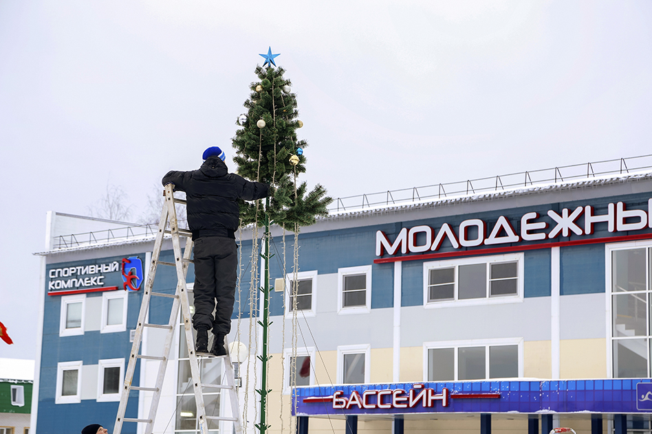 На время нашего визита ёлку собирали и у ФОК «Молодёжный». Дедлайн, как-никак.
