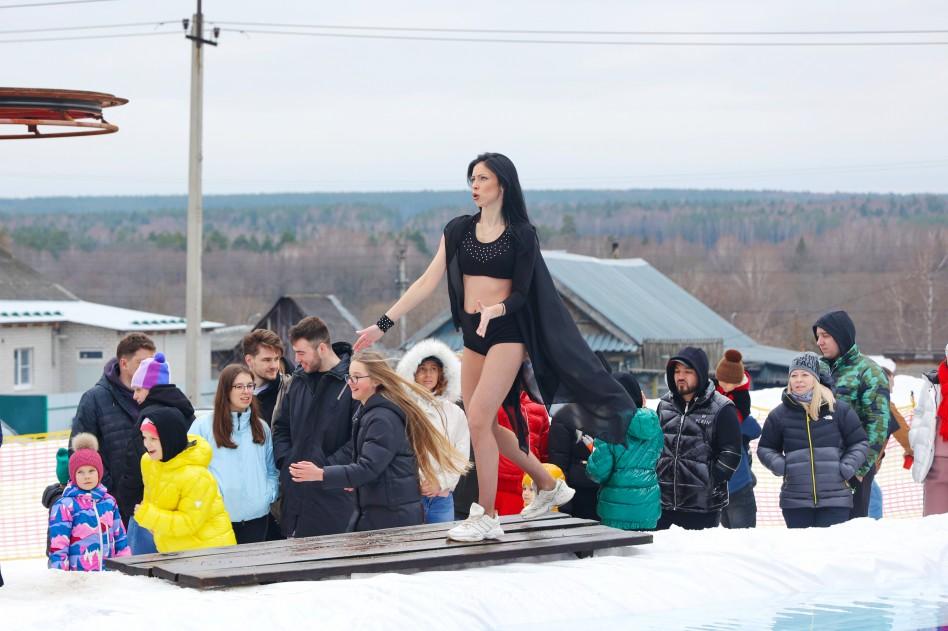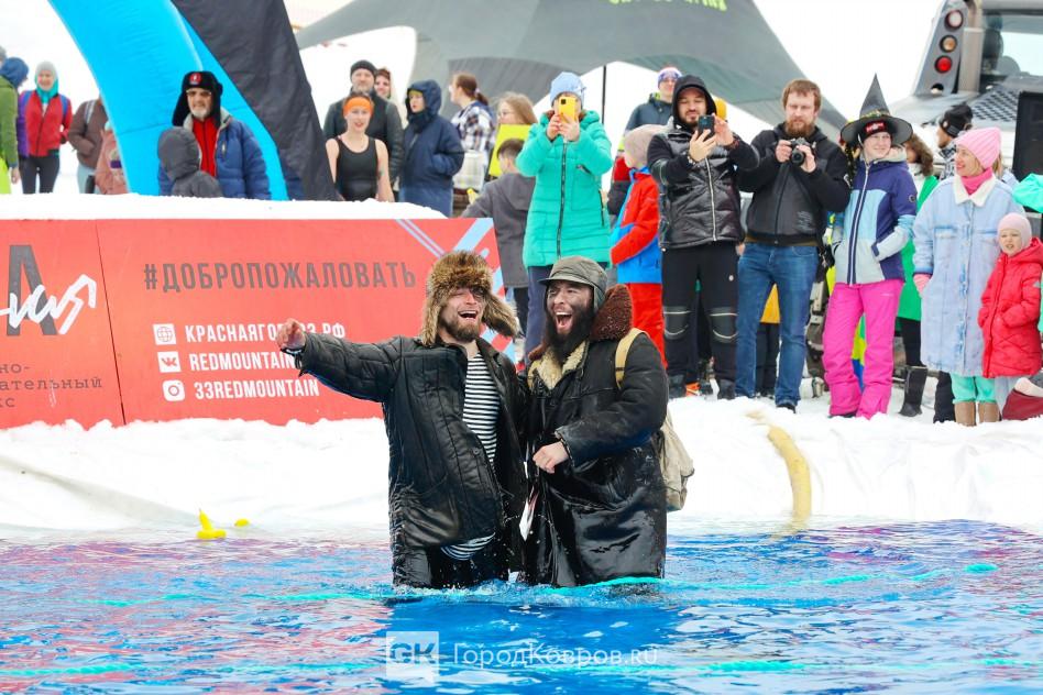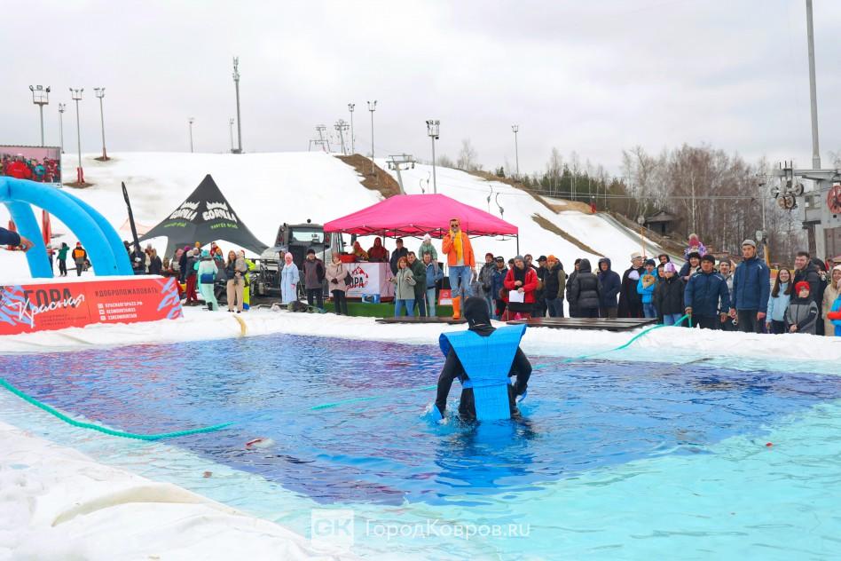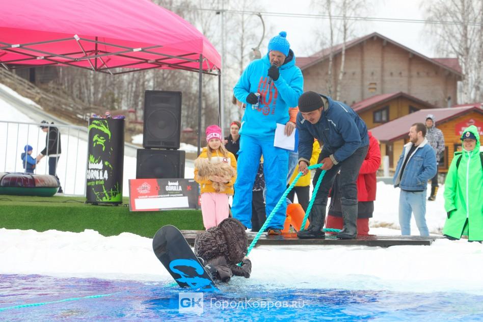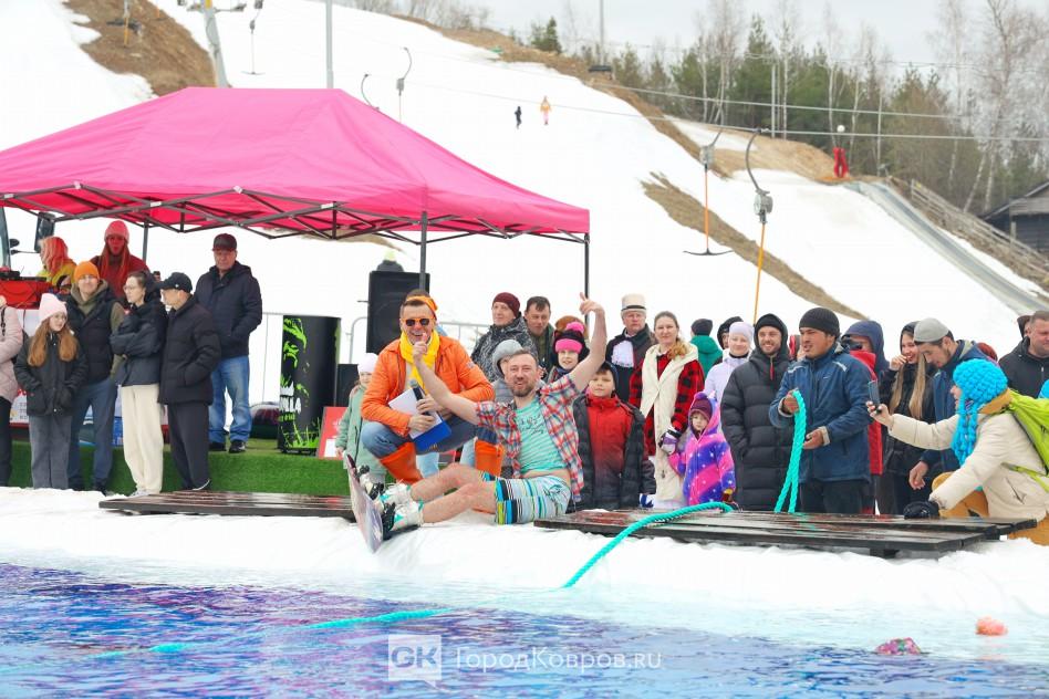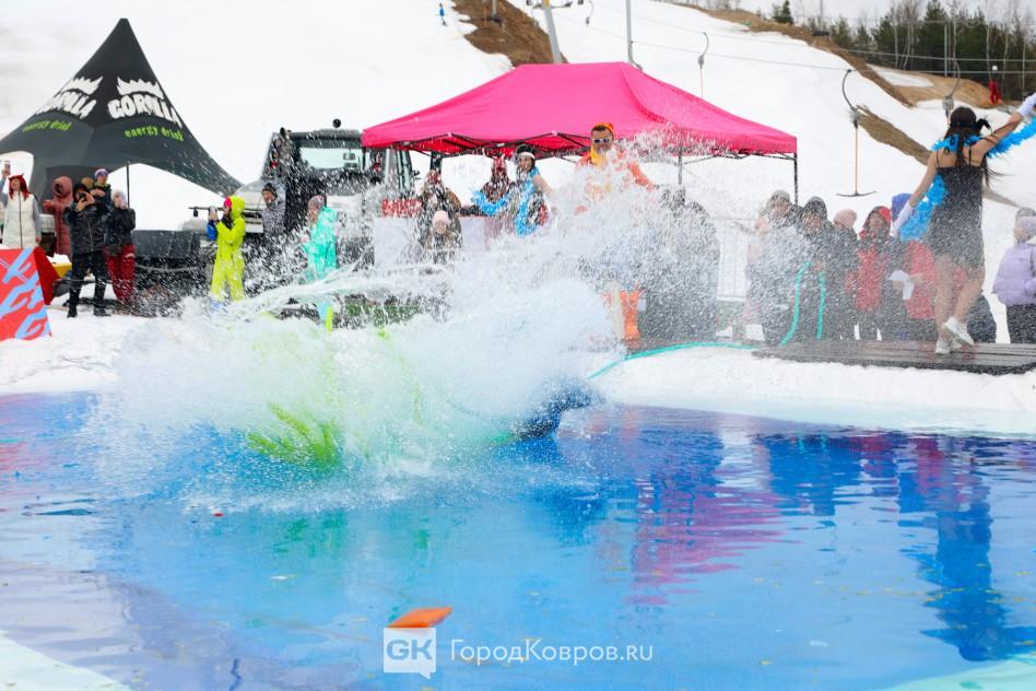 Слетали в бассейн все настолько стремительно, что многие участники оставляли лыжи, палки, сноуборды и детали костюмов в воде. Но с этим ловко справлялись работники «Красной Горы». А участники им нередко помогали отлавливать из воды утраченные аксессуары.