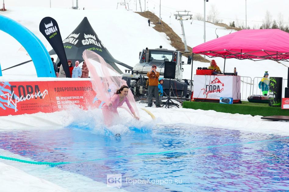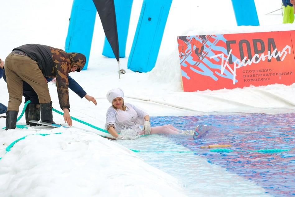 По многолетней традиции сезон катания на лыжах и сноубордах на «Красной Горе» завершает «АКВАШОУ». Спуск со склона с финальным погружением в бассейн, который специально для этого устанавливают у подножия склона – это и, спорт, и развлечение, и карнавал. И событие, о котором сообщают блогеры и СМИ.