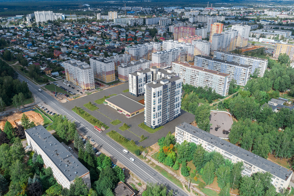 Дом планируется построить рядом с новым микрорайоном Маршала Устинова. Разработчик проекта хочет, чтобы его дом выделялся на фоне общей застройки и предлагает построить16-этажку в синих тонах. Здание каркасное с монолитными стенами, с панорамными окнами.