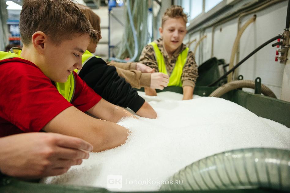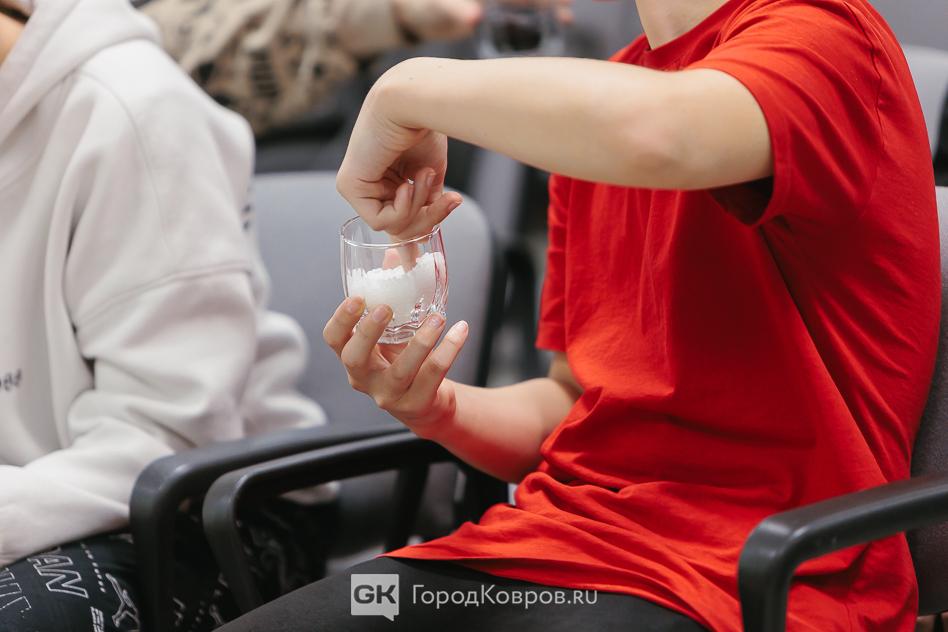 Школьники с интересом рассматривали и даже запускали пальцы в баночки с гранулами. Поверить в то, что на их глазах крупинки превратятся во что-то большое и полезное, ребята были ещё не готовы.
