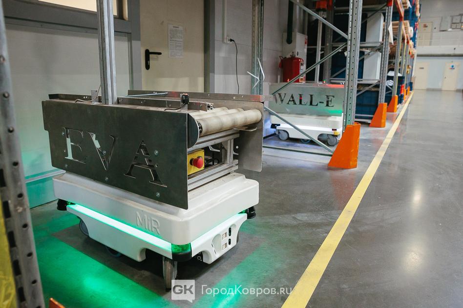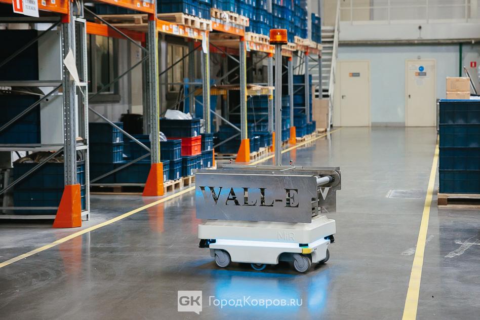- «Ребята, обратите внимание, что у наших роботов-помощников есть имена – это Ева и Валли! Еще сегодня вы увидите роботы-штабелеры, которые самостоятельно круглосуточно перемещают полные палеты продукции. И у них тоже есть имена – Жорик и Толик».