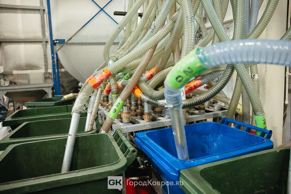 Нам показали, как на термопластавтоматах пластиковые гранулы превращаются в самые разные детали. Материал для деталей, та самая «зернистая икра», которую школьники уже видели в небольших баночках, хранится в специальных больших емкостях, откуда он с помощью вакуумной системы поступает по специальным трубам к станкам. Материал словно «засасывает робот-пылесос».