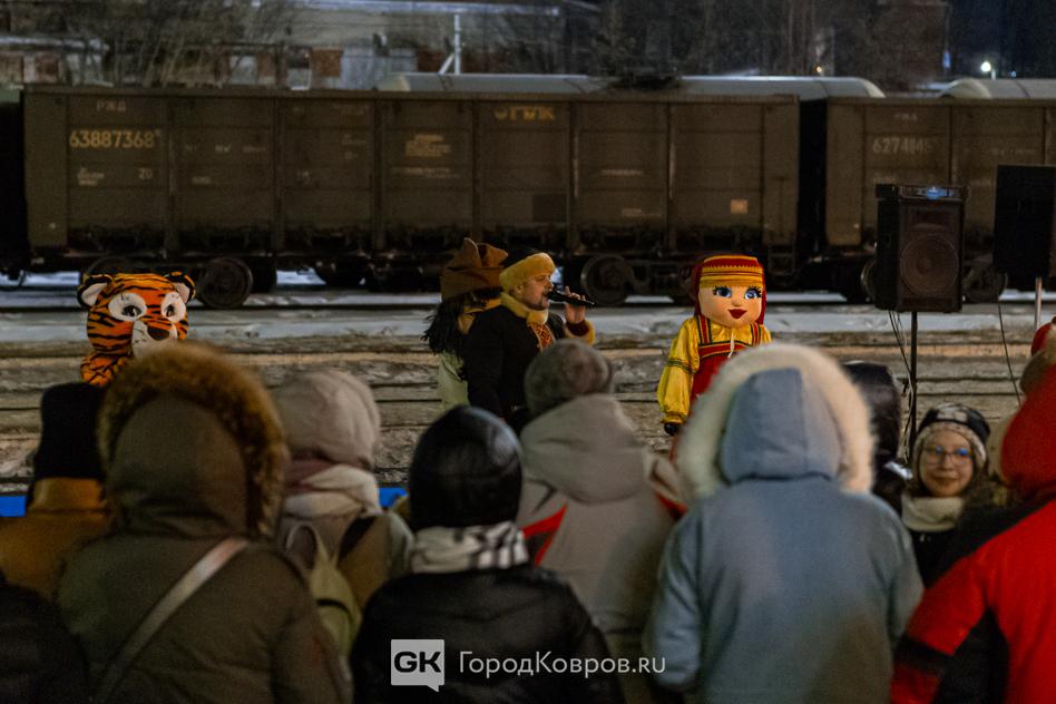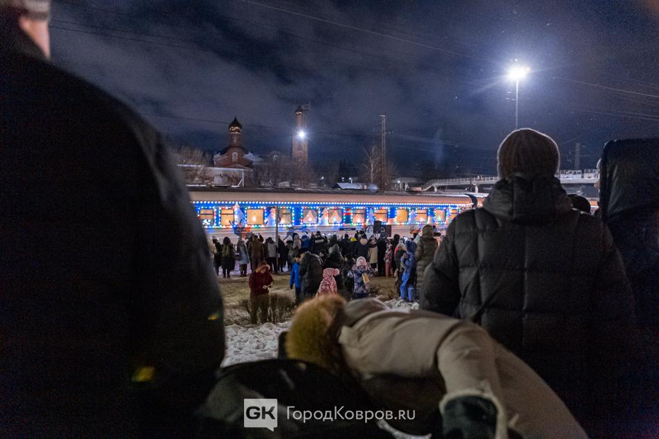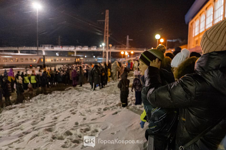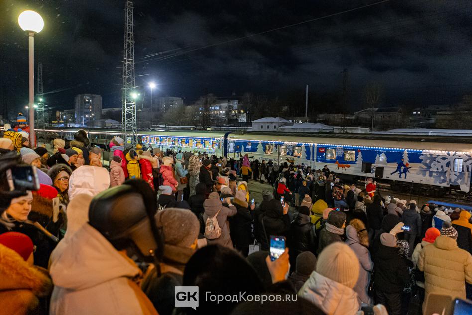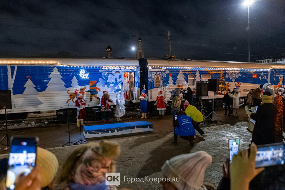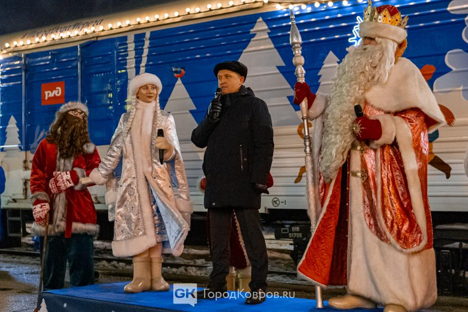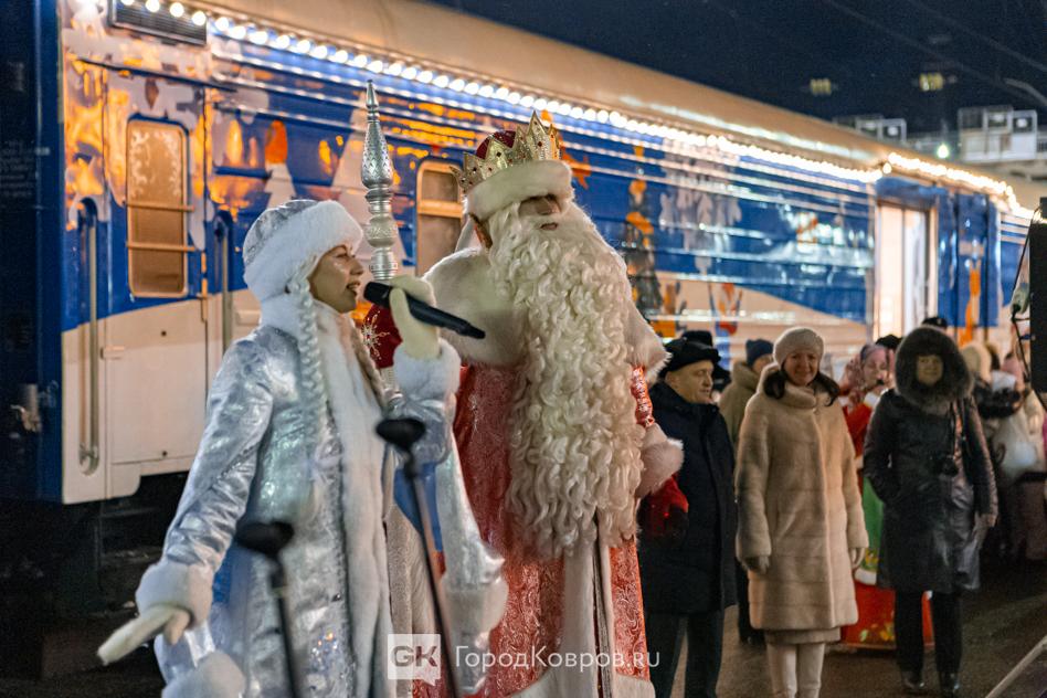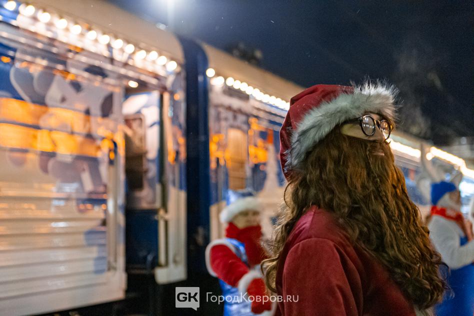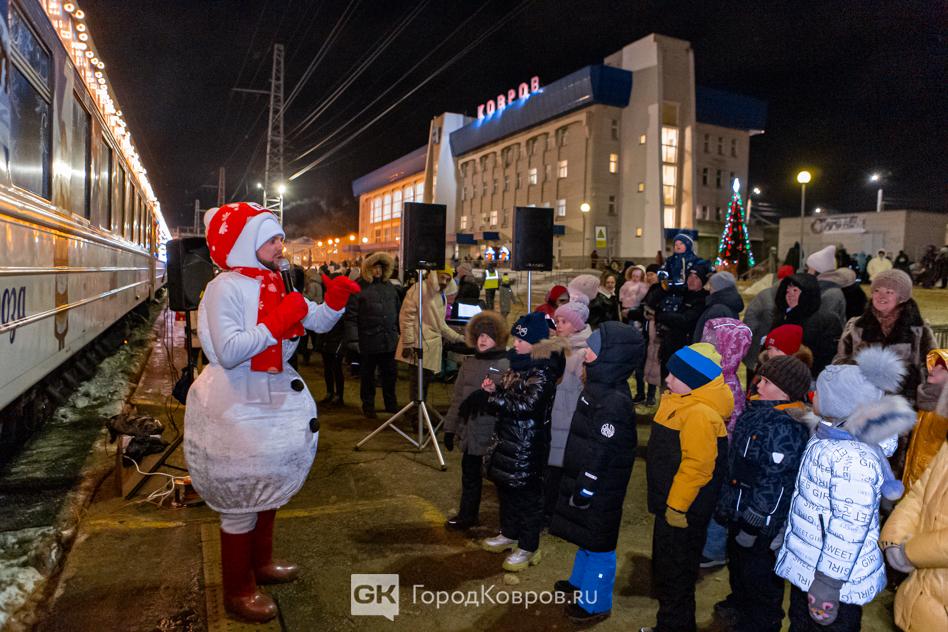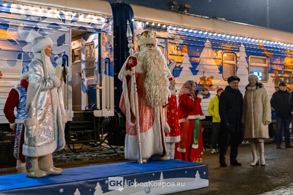 Поезд деда Мороза (напомним) – это имиджевый проект РЖД. Акцию проводят уже третий год. Ежегодно в канун Нового года утверждается список городов. В этом году впервые в перечне появился Ковров. Более того, впервые сказочный экспресс сделал официальную остановку на территории Владимирской области.