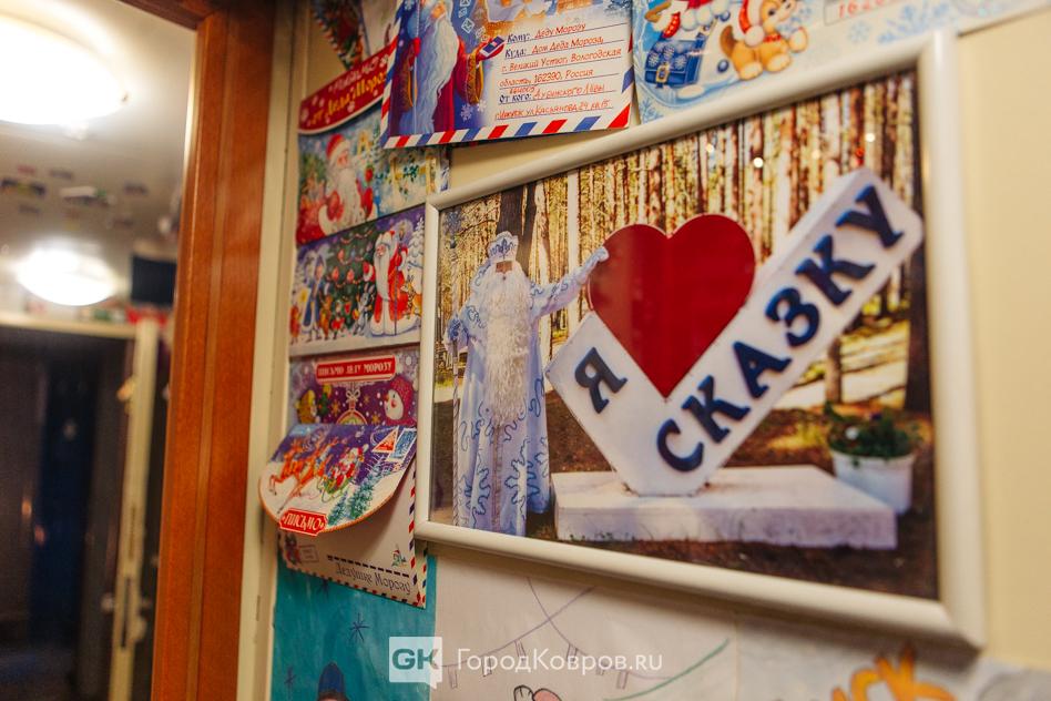 В вагоне-резиденции, куда вместе с детишками разрешили войти фотографам и операторам, атмосферу праздника обеспечивала сказочная утварь и письма, которые, предположительно, дети отправляли деду Морозу в разные годы.