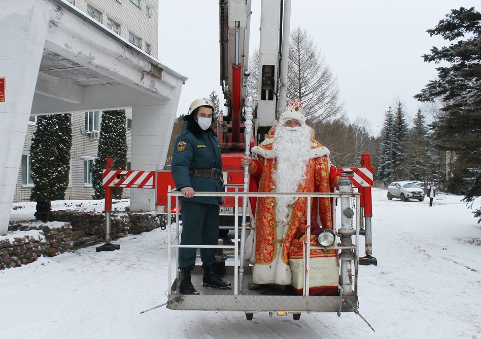 Сделать это ему помогли сотрудники пожарной охраны города Коврова. Из-за пандемии коронавруса встреча с маленькими пациентами прошла бесконтактно. Сказочный волшебник поздравил ребят с наступающим Новым годом, пожелал скорейшего выздоровления и через окно вручил подарки для всех 40 маленьких пациентов.
