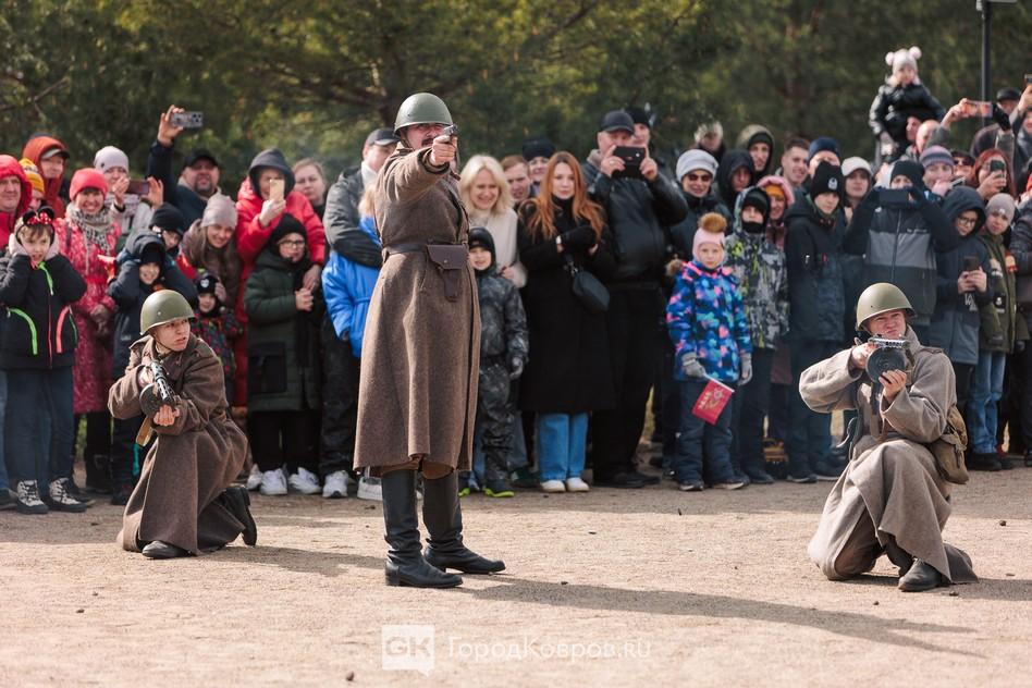 Концерт на мобильной сцене завершили девушки-маржоретки, которые ранее, как и спецназовцы, участвовали в мероприятиях в Коврове на площади Победы. Девчонки сообщили, что очень рады своей востребованности: «Два выступления за день! О таком только шоу-звёзды 90-х могли мечтать!».
