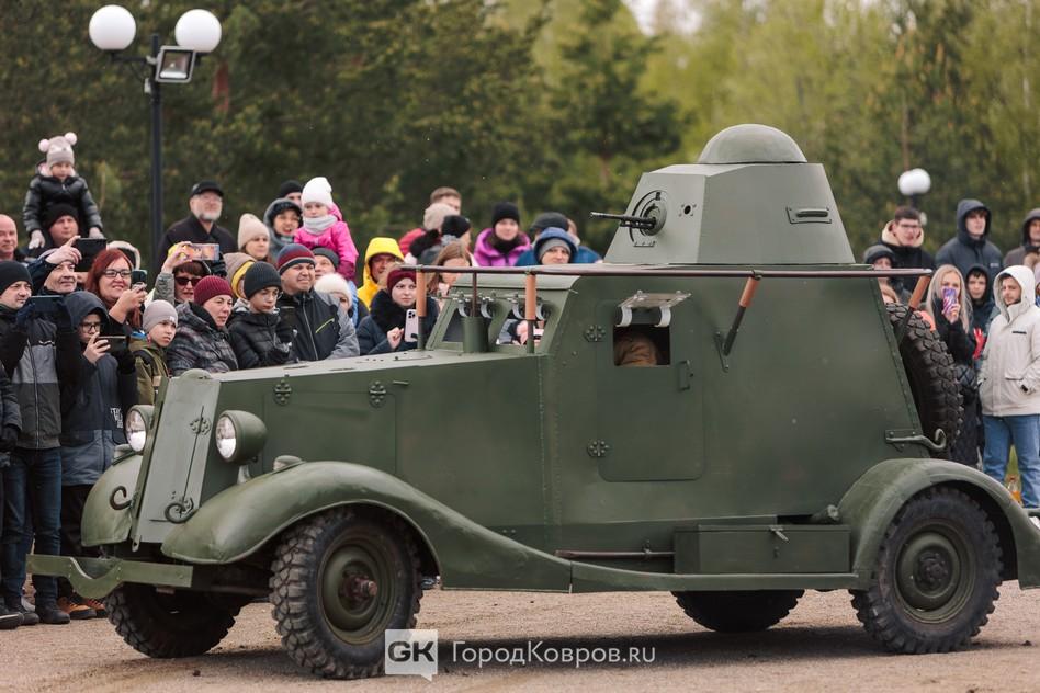Как впоследствии сообщили реконструкторы из «Наследников Победы» (а это были именно они), сразу по завершении мероприятий в Коврове технику погрузили на платформу, и вся экспозиция была перемещена в Коврвоский район. Егор Пухов, один из руководителей сообщества реконструкторов, сообщил: