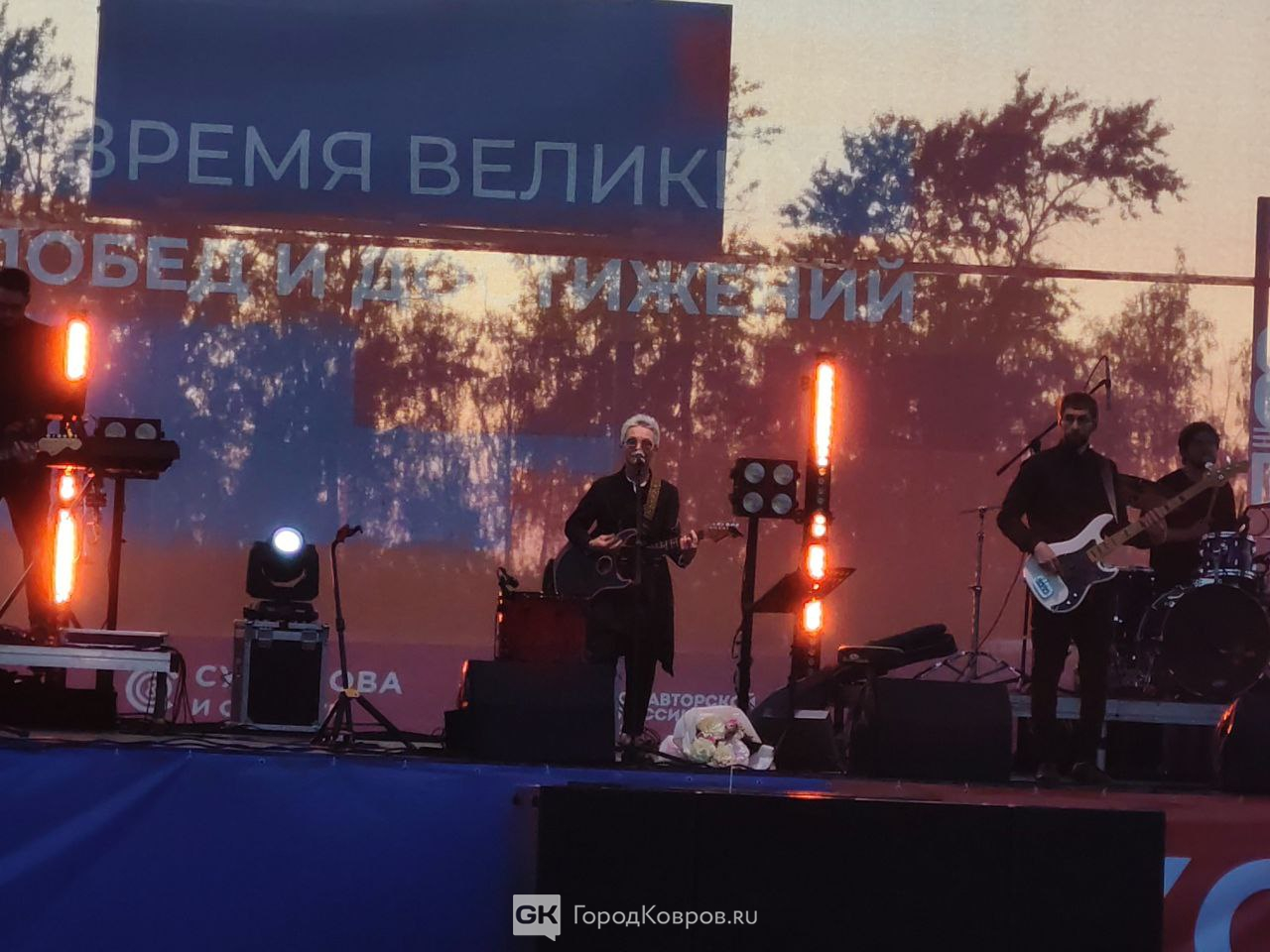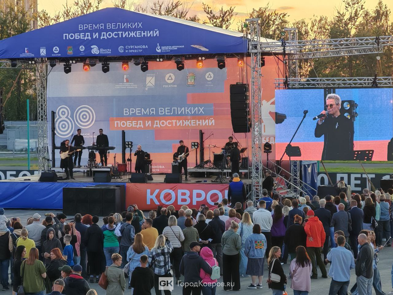 Концерт «Сурганова и Оркестр» прошёл в Коврове 19 августа. Он стал подарком городу в честь 80-летнего юбилея атомной промышленности. Вечер открыли официальные лица: чиновники, представители заводов и отраслевых предприятий. Зрителей в этот момент было немного — трибуны были полупусты, а у сцены скромное число людей. Однако постепенно публика начала подтягиваться, атмосфера наполнялась ожиданием и оживлением…