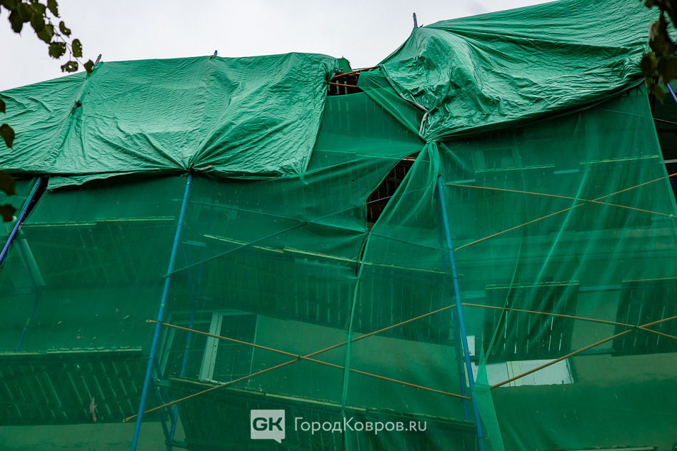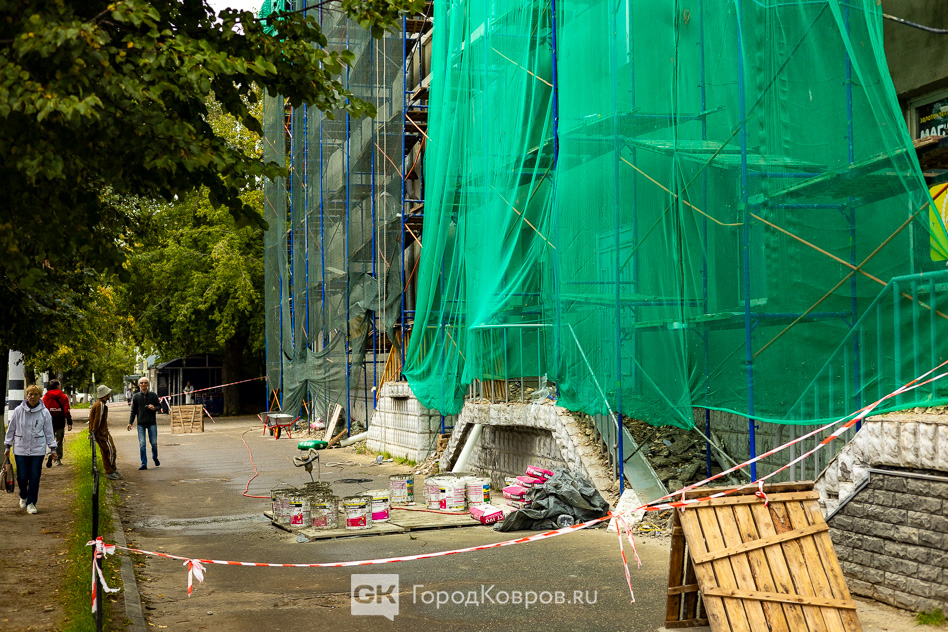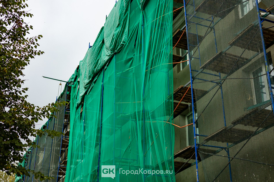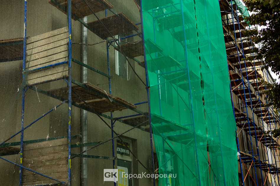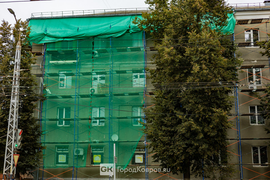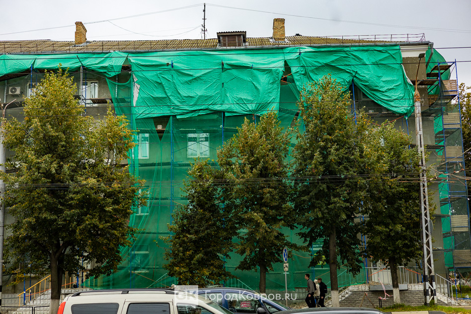 Ремонт четырёхэтажного дома на перекрёстке проспекта Ленина и улицы Социалистической (проспект Ленина, 18) идёт с начала лета. Фасадные работы сразу привлекли внимание ковровчан.
