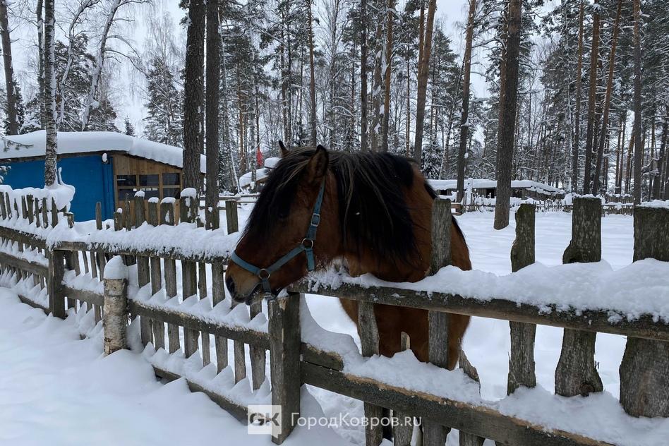 На нижнюю площадку, о которой столько раз упоминалось, мы отправились на снегоходе. Он в «Берёзке» является служебным транспортом. С ветерком довёз директор до заборчика, за которым… живут лошадка и два пони: