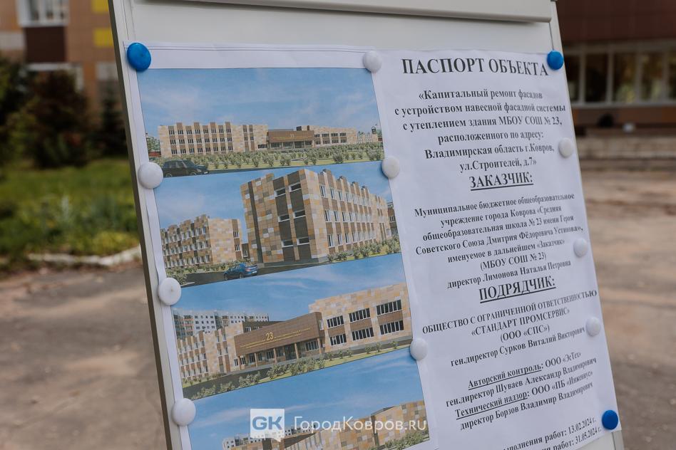Фасадные работы производит ООО «Стандарт Промсервис». Генеральный директор фирмы Виталий Сурков 21 июня отчитывался перед губернатором Александром Авдеевым о ходе работ во время рабочего визита последнего в Ковров.