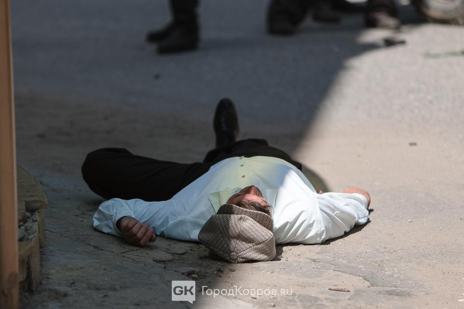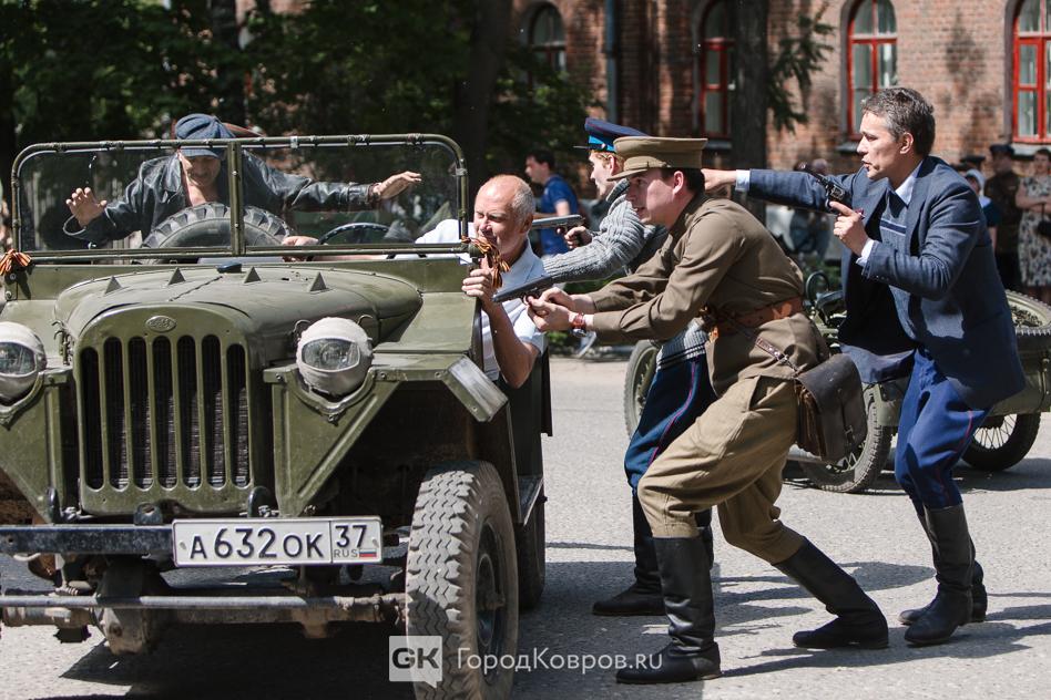 Сценарий сцены ограбления был разработан реконструкторами из Коврова. Ведущую роль сыграл ВПЦ имени Шпагина, где не только придумали, как всё будет, но и предоставили авто и мототехнику, которая реально ездила по городу после Великой Отечественной.