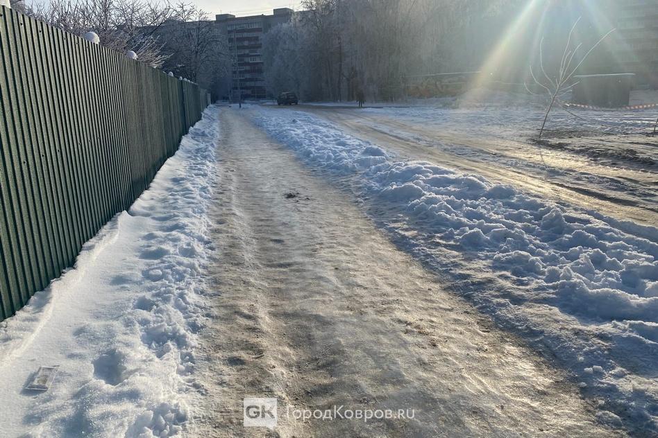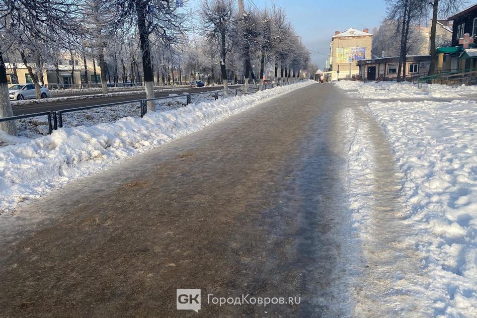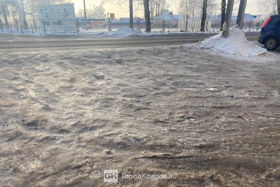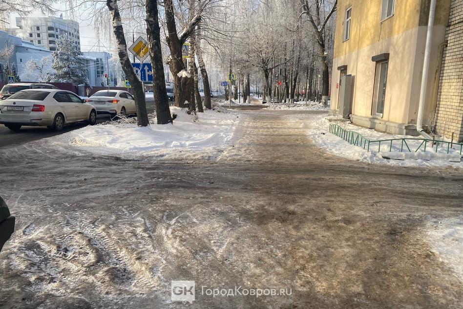 Хотя отвлекаться на любование опасно. Один неверный шаг, и ты уже смотришь в небо над Ковровом. Как сообщает администрация, работы по очистке и посыпке дорог ведутся ежедневно. Однако песок, как уже отмечено, не спасает. По-моему, нужны реагенты.
