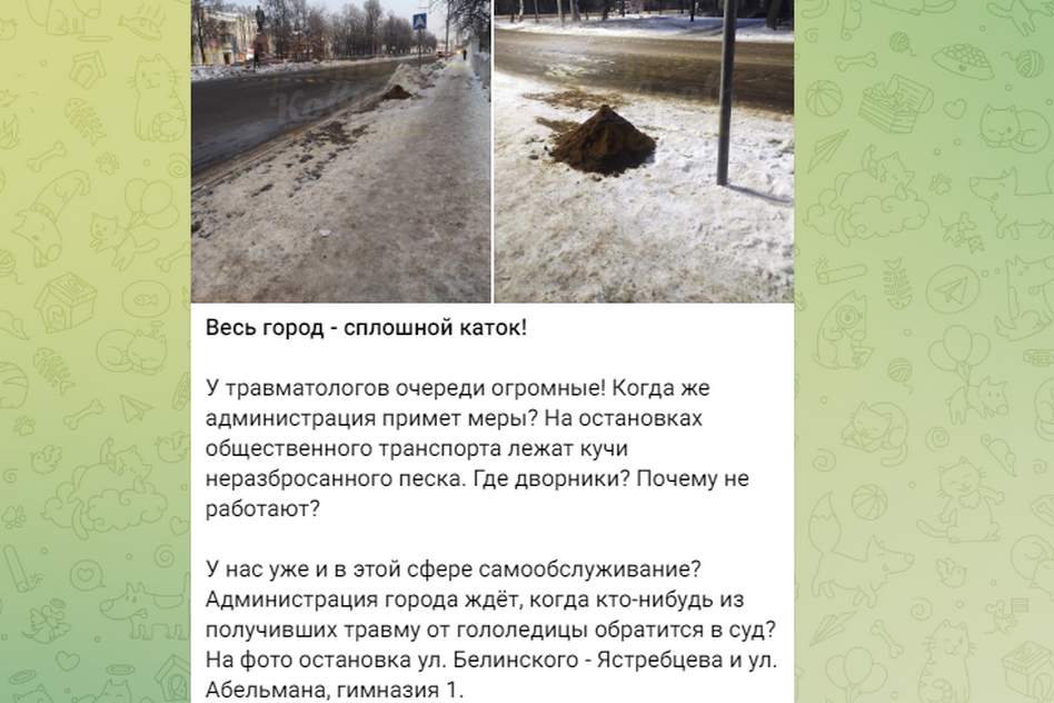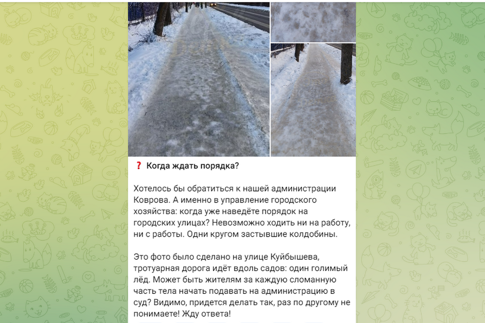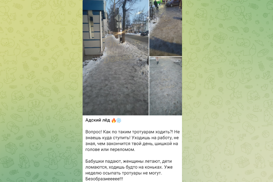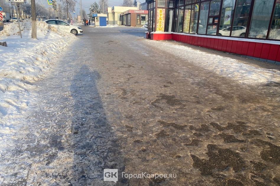 Ковров превратился в один большой каток. Люди возмущены, а пескосоляная смесь не спасает от падений…