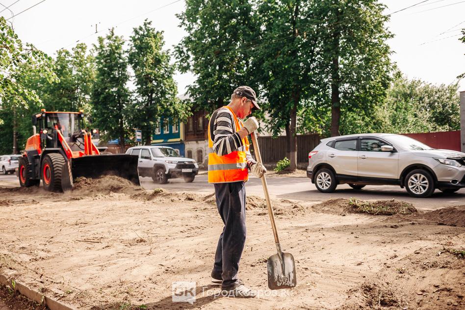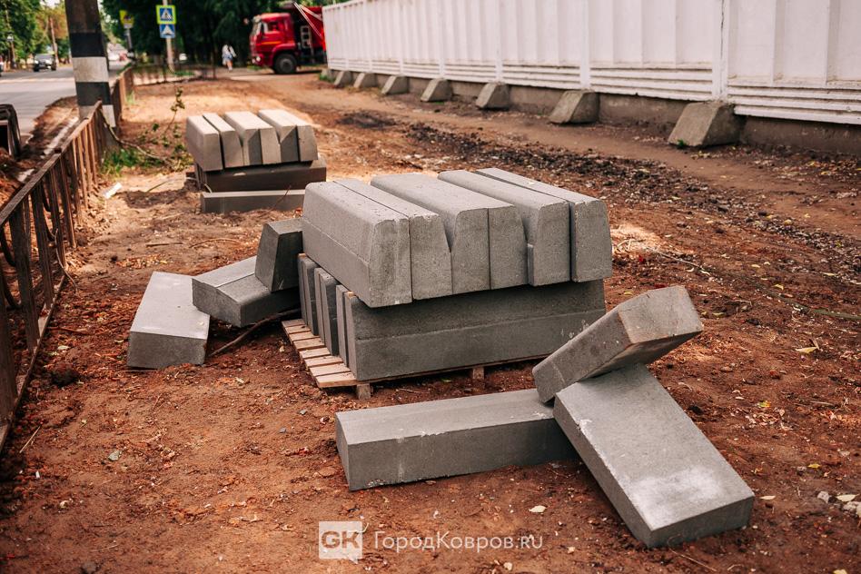 Рядом в штабеле был сложен новый бордюрный камень. Что и бордюры будут менять? Оказалось, что нет — на улице Дегтярёва индивидуальное мало-архитектурное решение.