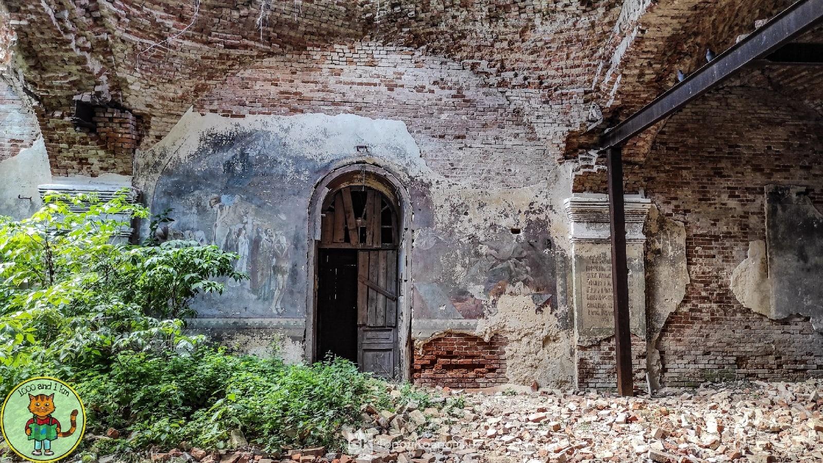Позднее некогда прекрасный храм обратился в руины, но в довольно занятные, поскольку сохранилась винтовая металлическая лестница, что ведёт на второй этаж и крышу.