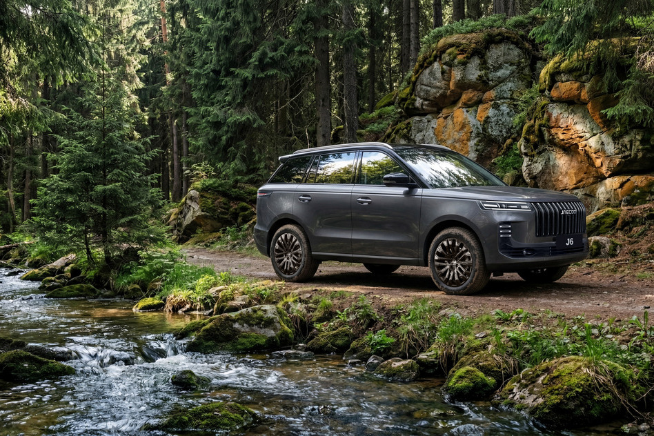 Внешность J6 отсылает к классическим британским внедорожником: строгие пропорции, массивная решётка радиатора, уверенный силуэт. При этом модель нельзя назвать прямым копированием — оригинальная светотехника, аккуратная пластика кузова и фирменные элементы формируют самостоятельный образ.