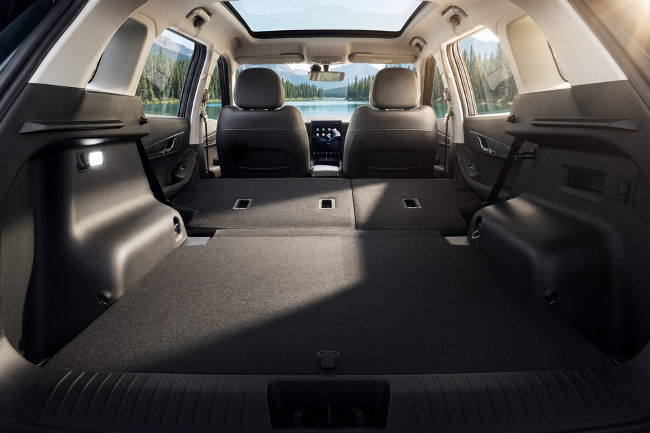 Багажник объёмом 480 литров соответствует классу, а при сложенных сиденьях увеличивается до 1200 литров. Дополнительный плюс — возможность установки фаркопа без сложных процедур согласования.