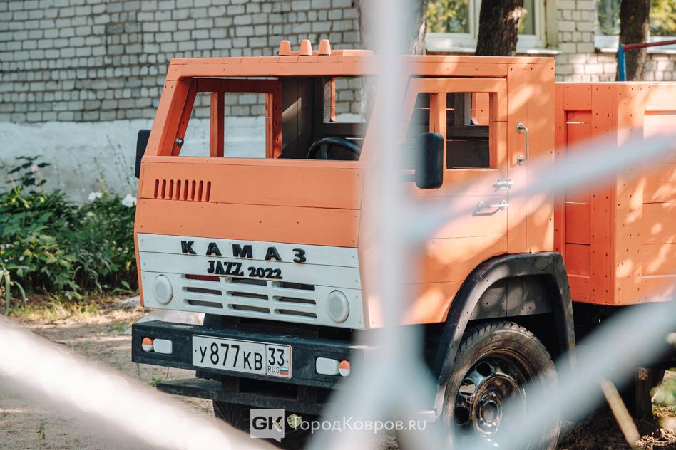 Жертв и разрушений нет. Грузовой автомобиль на детской площадке детского сада №37 на улице Гастелло в Коврове — это инсталляция. Очередная работа ковровского умельца Василия Лютницкого.