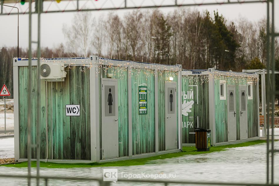 К сожалению, не смогли оценить и подсветку — были днём. Однако даже в светлое время суток понимаешь, насколько красив вечерний каток. Подсвечено буквально всё — от инсталляции на парковке до туалетов. Кстати, они на катке отличные, тёплые и комфортабельные, что очень важно.
