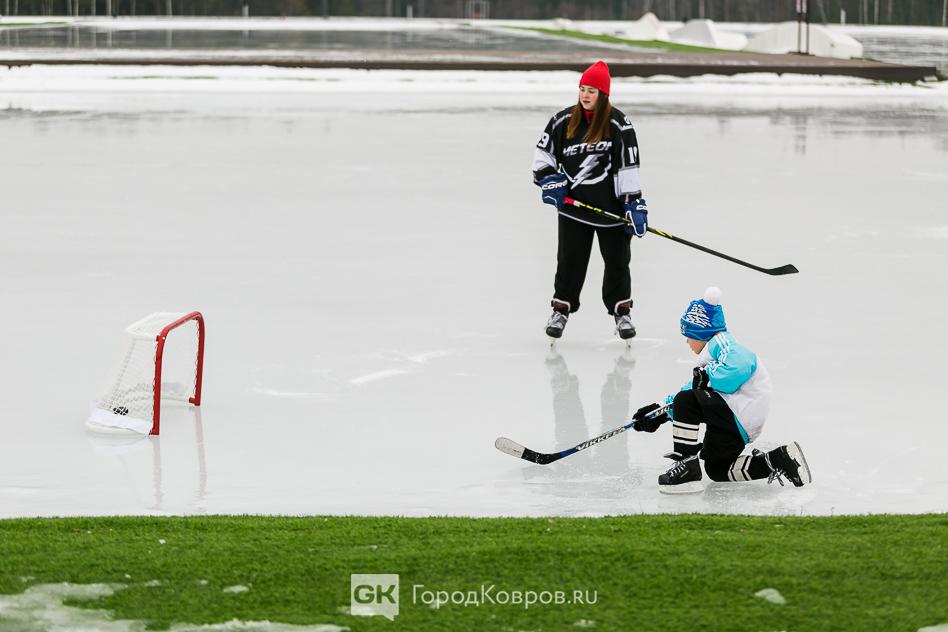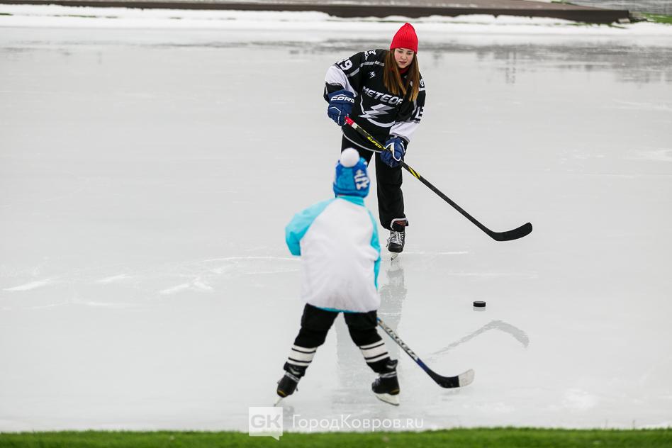 Так, семья из Владимира приехала в Доброград даже со своими хоккейными воротами. Ледовым спортом увлечены папа и сын, а мама болельщица.
