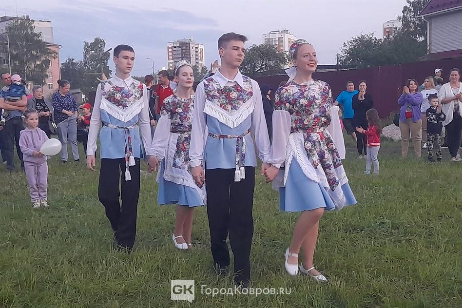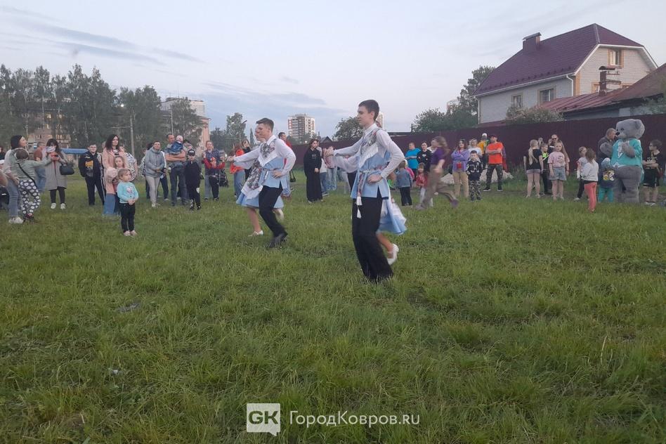 Перед кинопоказом на лужайке потанцевала самодеятельность из ансамбля бального танца «Синтез» . Увы, газоны у нас в городе — это скорее, лужайки.