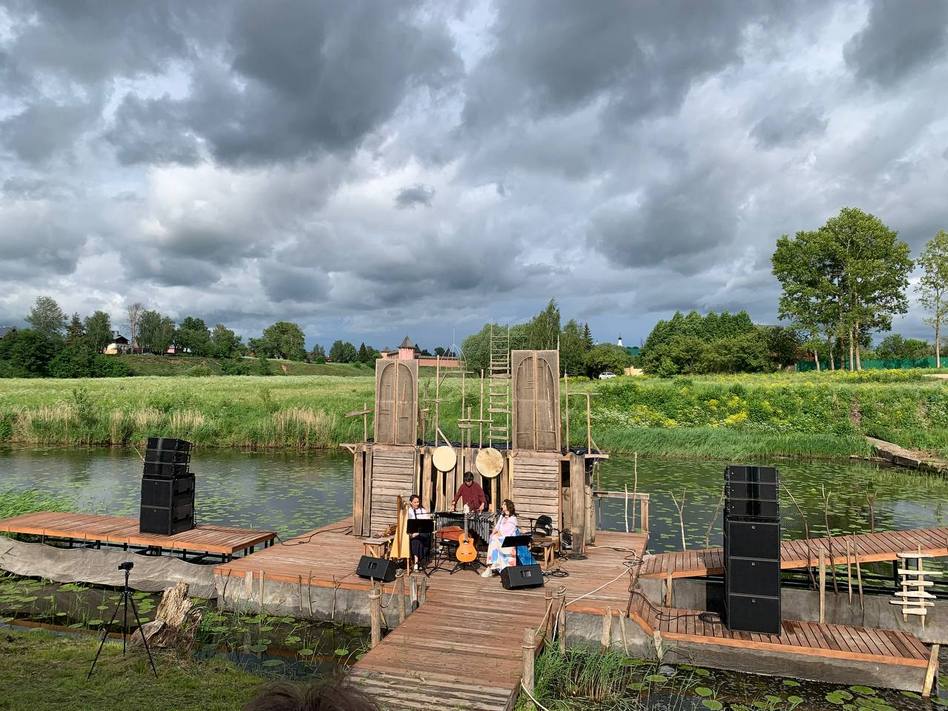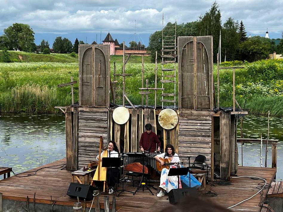 Над Каменкой полились звуки гитары, арфы, гуслей, вибрафона и сантура. Музыканты исполнили народные песни, песни на стихи русских поэтов и авторские произведения. Уже к середине выступления над Суздалем засияло солнце. Ветер давал о себе знать, только перебирая струны инструментов. Арфа и гусли словно оживали и пели оду суздальским просторам.