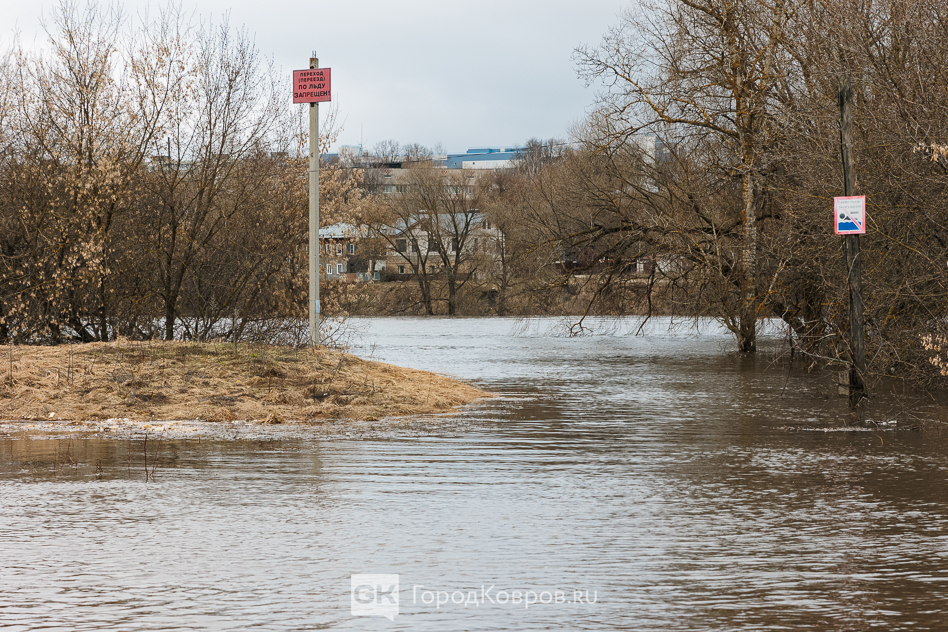 Утром 10 апреля уровень воды в реке Клязьма в районе автомобильного моста в Коврове составил 347 сантиметров. За сутки вода поднялась на 18 сантиметров, а с вечера предыдущего дня — на 10. Подтоплены десятки приусадебных участков на улице Кузнечной и в микрорайоне Заречная Слободка, а также подъезды к домам на улице Затон Старки. Напомним, опасным для города считается подъём до 5 метров.