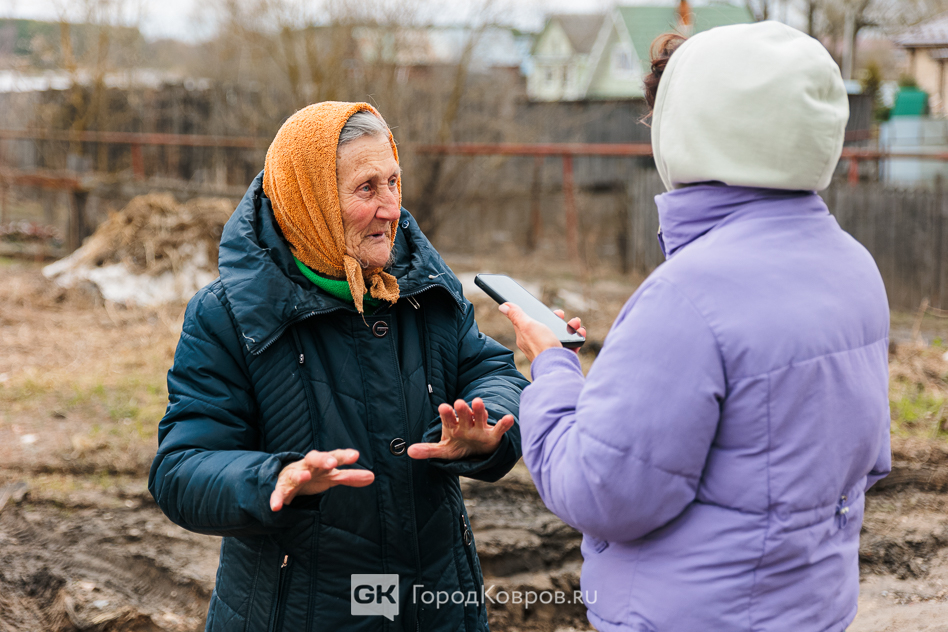 В Слободке встретили двух местных жительниц. Молодая женщина Ирина переходила к дому по временному мостику. Её дом стоит вплотную к кромке воды, но она спокойна и уверена: именно сегодня, 10 апреля, пиковый день, больше Клязьма не поднимется. Об эвакуации она даже не думает.