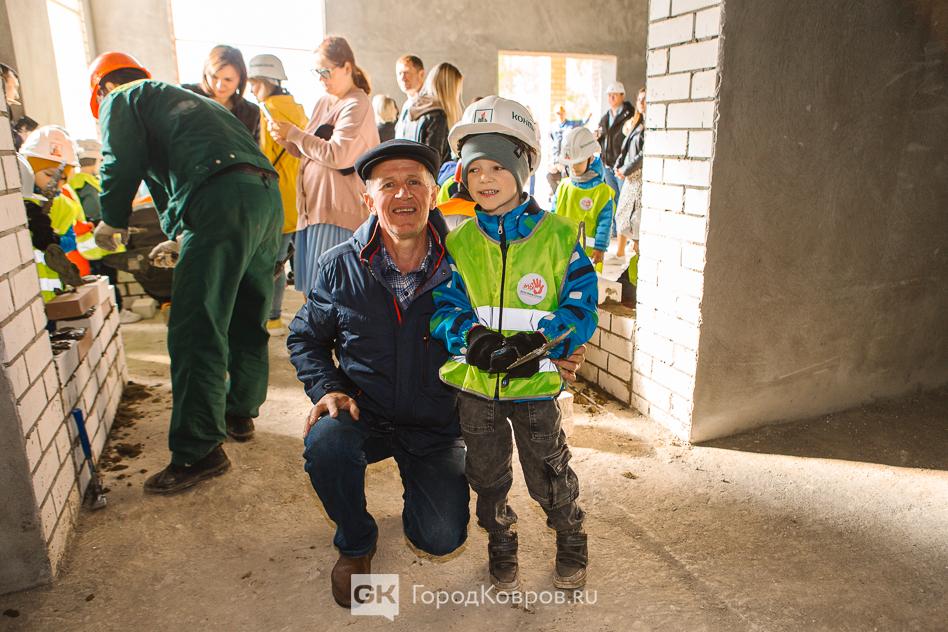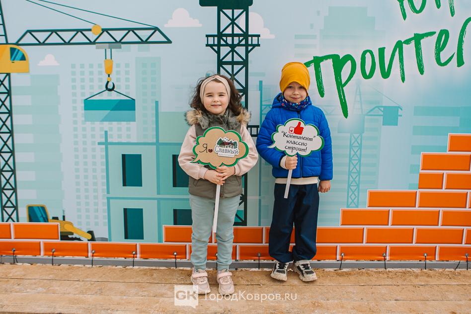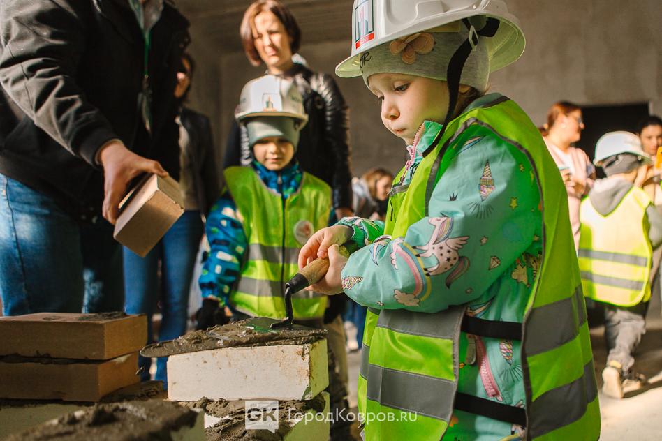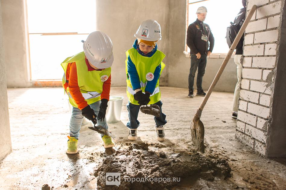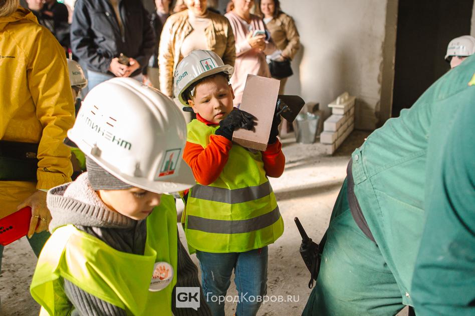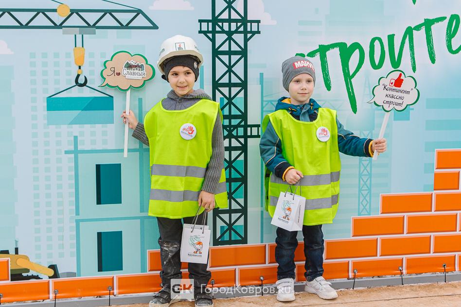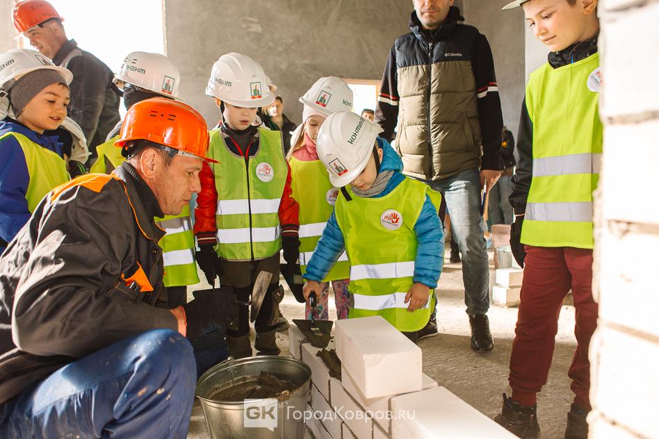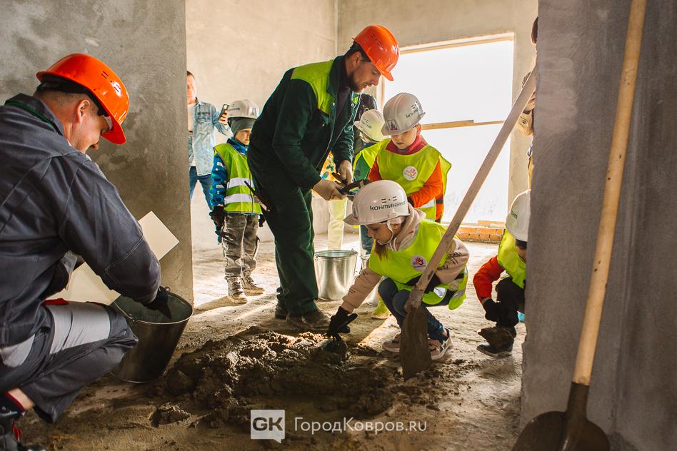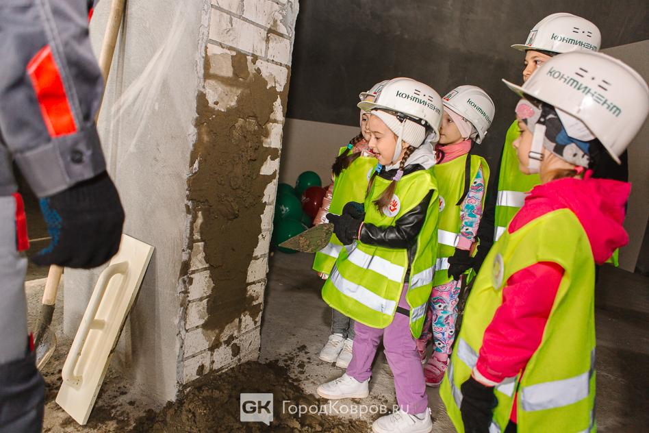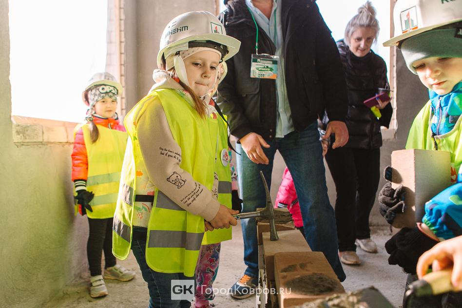И это было только начало. Далее строгая воспитательница построила малышню парами и все направились в строящееся здание. Там детей встретили каменщики СК «Континент» Сергей, Александр и Максим.