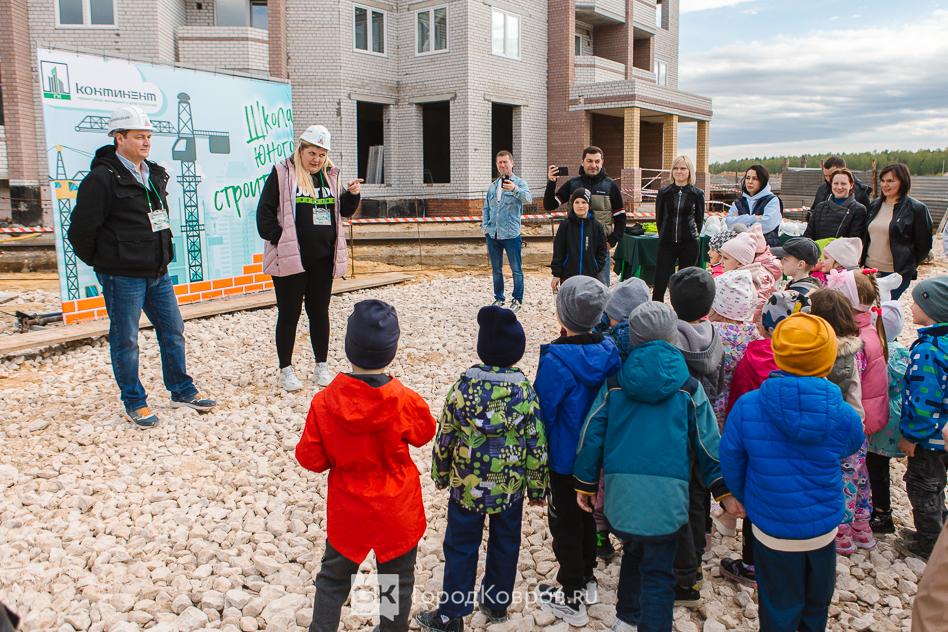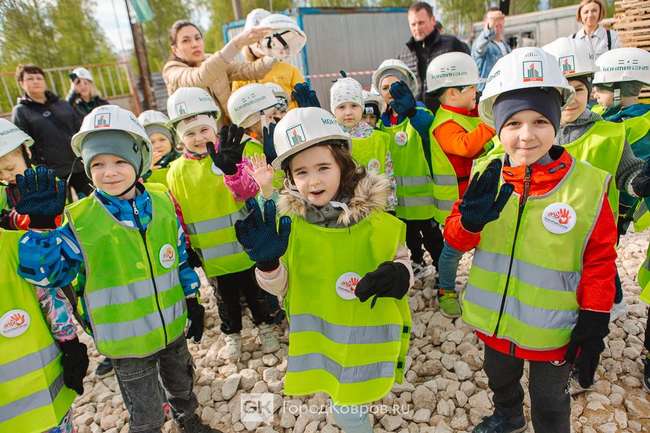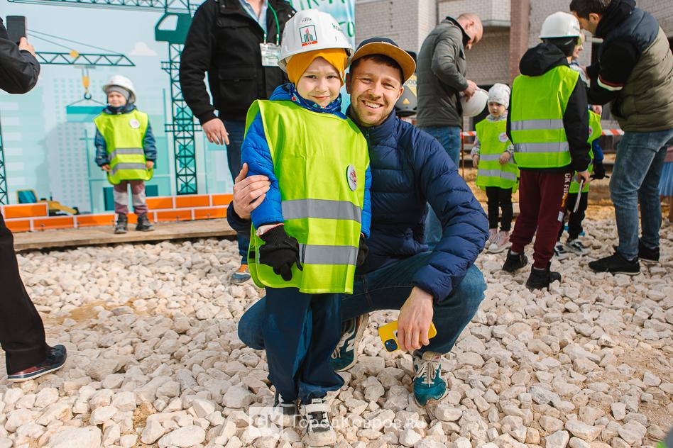 Малыши изучали площадку, работали каменщиками и даже… руководили работой башенного крана. Спокойно! Всё абсолютно безопасно и под контролем родителей, воспитателя и специалистов строительной компании «Континент».
