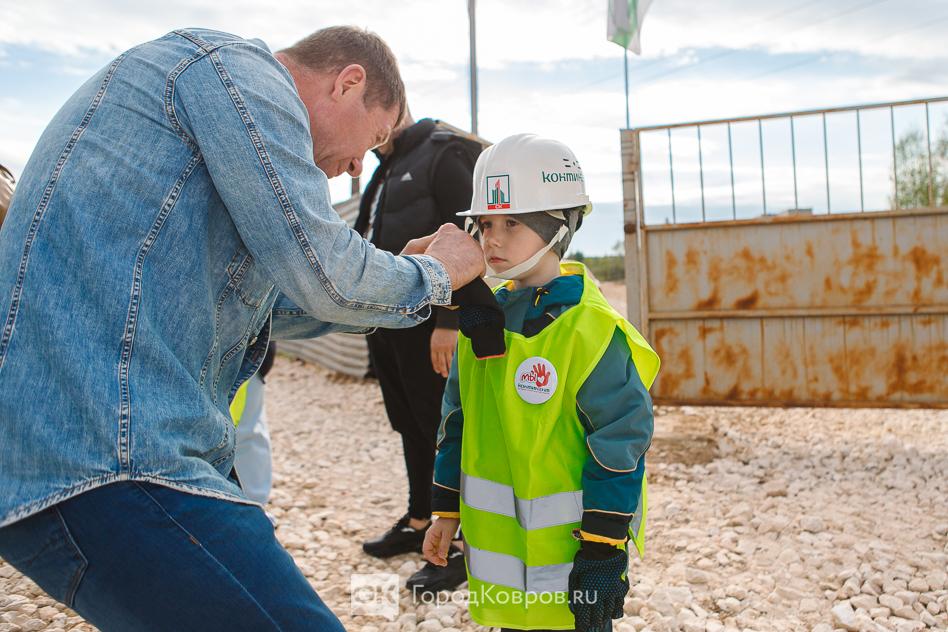 После инструктажа по технике безопасности всем предложили надеть светоотражающие жилеты и строительные каски. Специально заказали жилетки детских размеров. Облачение стало отдельной весёлой игрой. Детям не просто выдавали жилетки, их посвящали в профессию строителя.